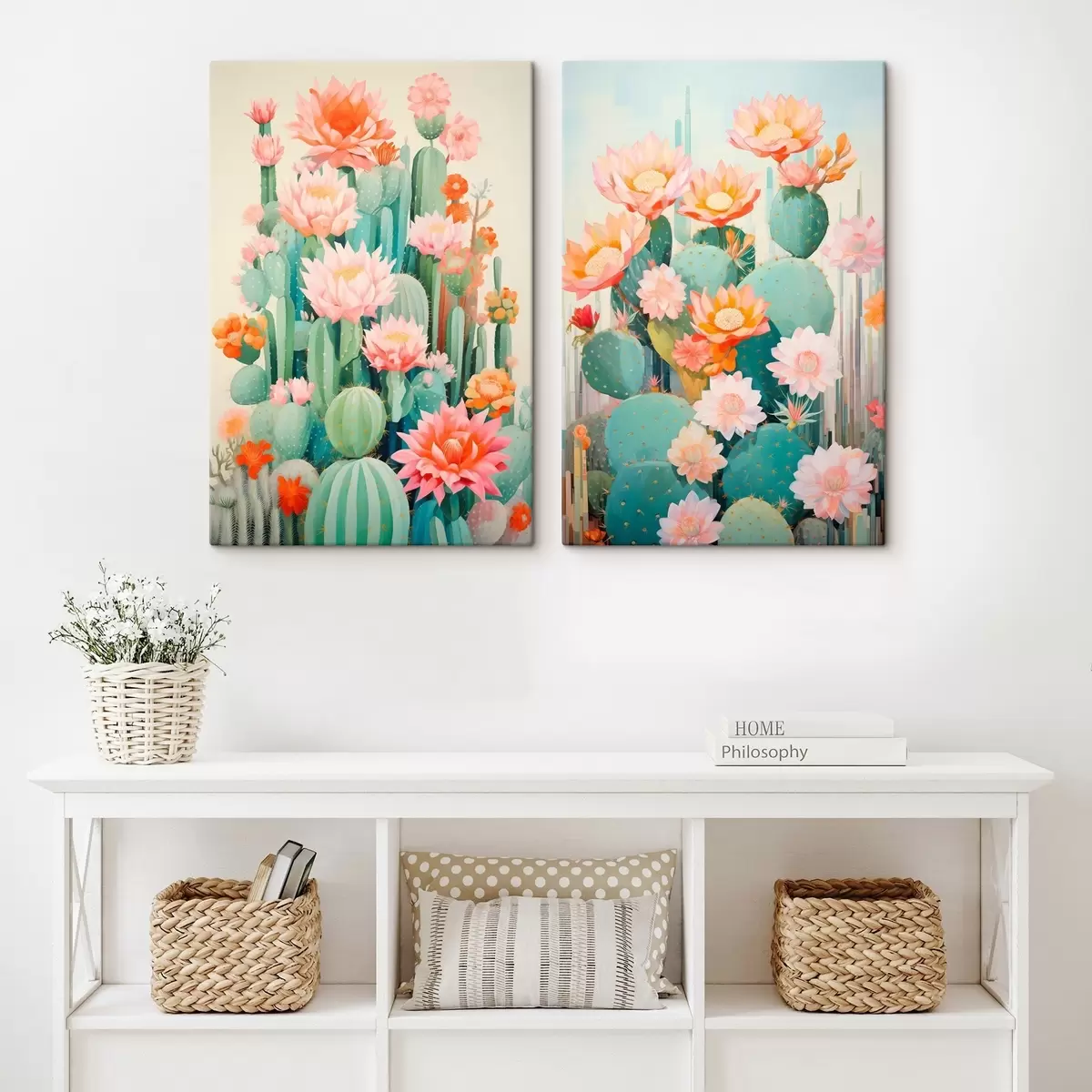 Cuadros Cactus con flores grandes, una paleta de colores pastel y una sensación de calma. Nr m01086