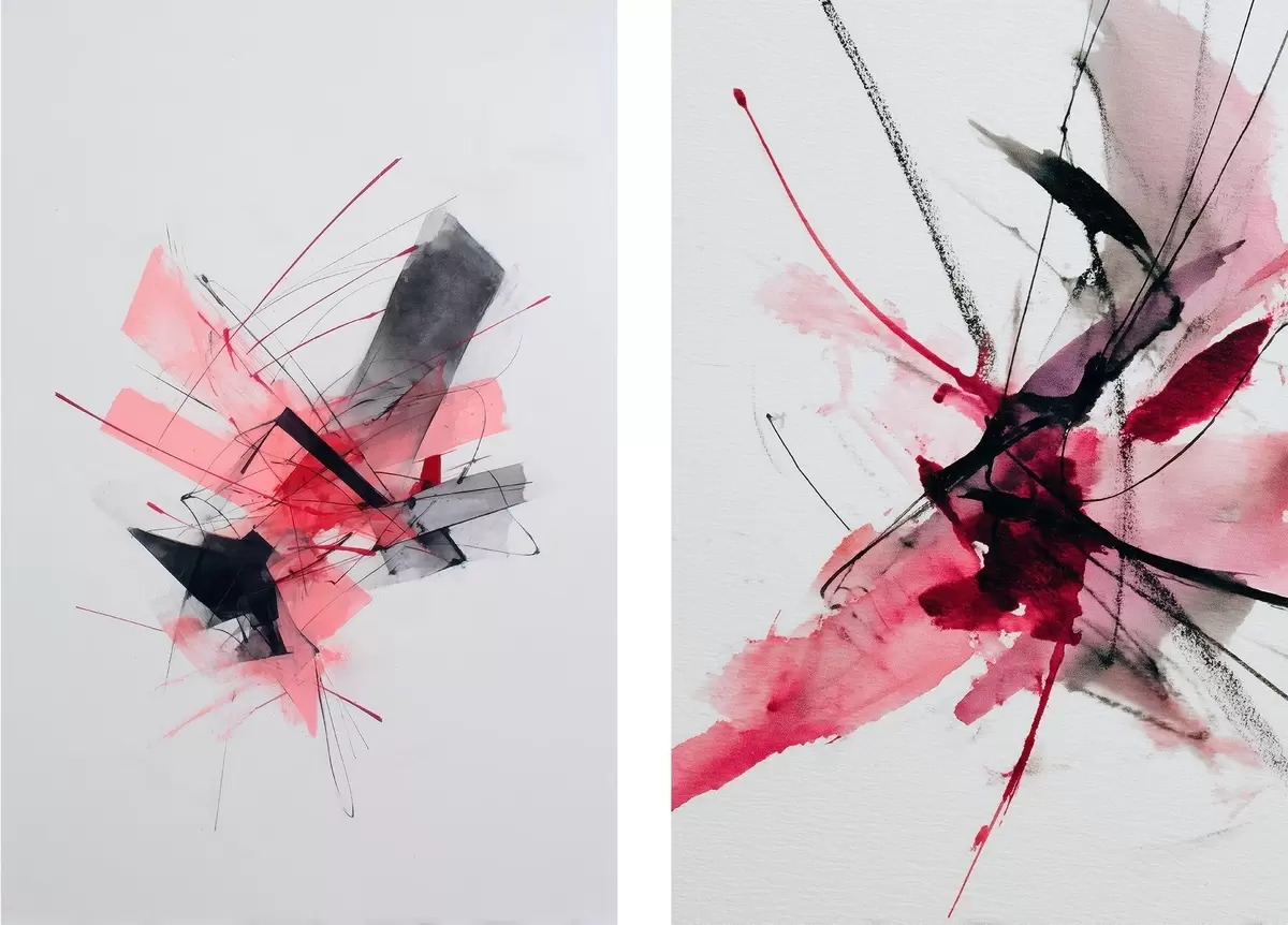 Cuadros Arte abstracto moderno con trazos dinámicos y capas de pintura semitransparentes. Nr m01094