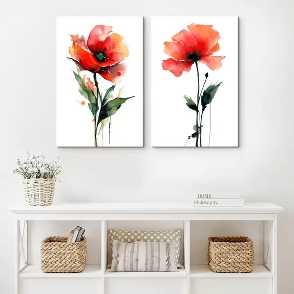 Cuadros Composición con amapolas rojas sobre fondo blanco en estilo acuarela. Nr m01100