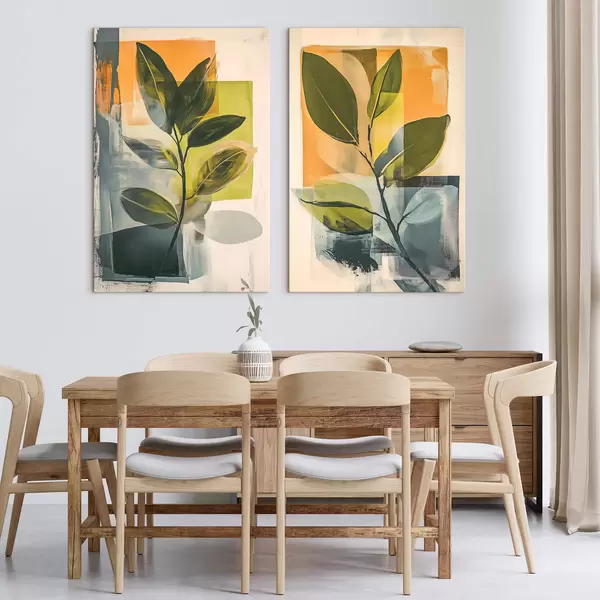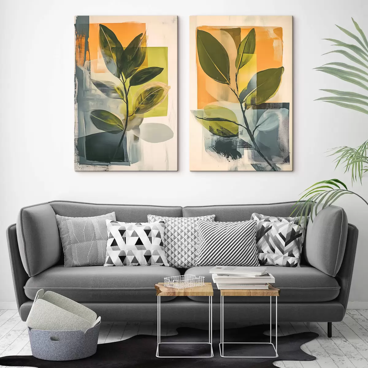 Cuadros Ramitas con hojas sobre un fondo abstracto Nr m01132