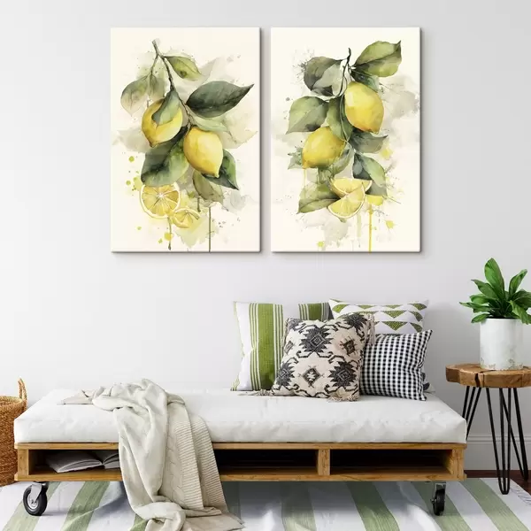 Cuadros rama con limones en estilo acuarela Nr m01172