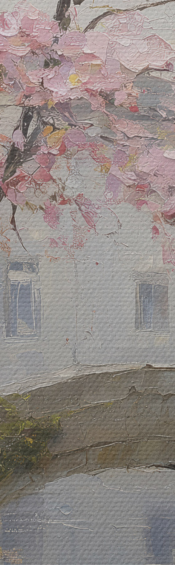 Cuadros Paisaje urbano romántico con un árbol en flor al estilo de la pintura al óleo. Nr m01173