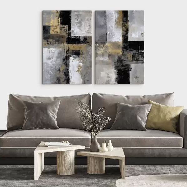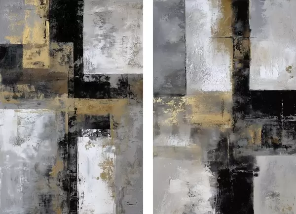 Cuadros abstracción textural contemporánea en tonos negros, grises y blancos Nr m01179