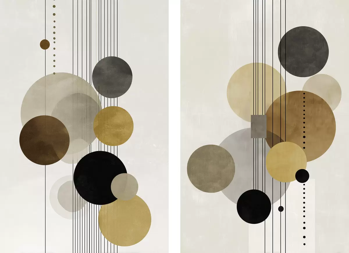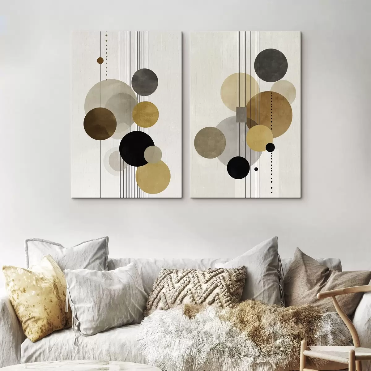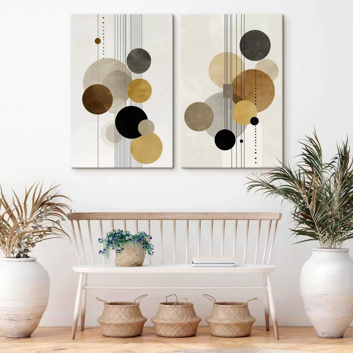 Cuadros abstracción con círculos y líneas en colores cálidos Nr m01182