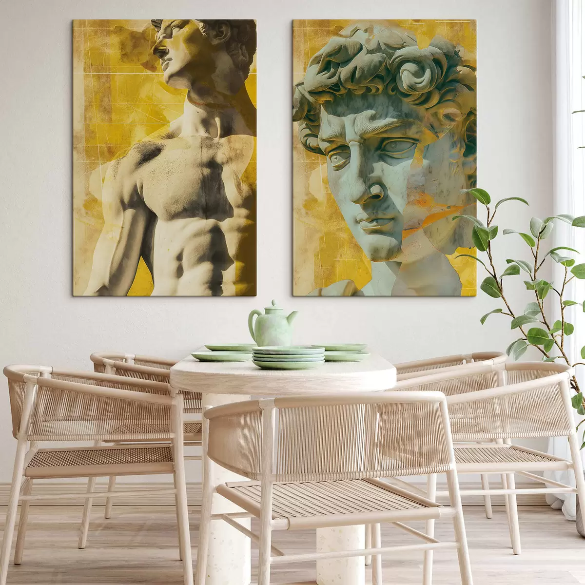 Hay tres tipos de material disponibles para pedidos: Lienzo Económico - material denso y duradero para impresión digital, idéntico al lienzo de pintor, superficie impermeable, reproducción realista de los detalles, material de grano medio. Lienzo Premium - la textura se asemeja a la de un lienzo de pintor (pequeños hilos entrelazados). Reproducción suave y detallada de la imagen sobre una superficie mate. Eco-Premium - tejido 100% algodón de alta calidad. Gracias a las fibras naturales de algodón, el material es duradero y resistente al desgaste. Excelente reproducción del color y el detalle.