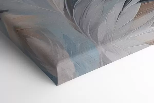 Cuadros Pintura abstracta de plumas en tonos blancos, azules y marrones, con una textura suave y fluida y un fondo claro. Nr m01234