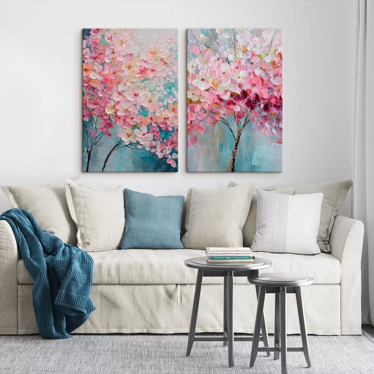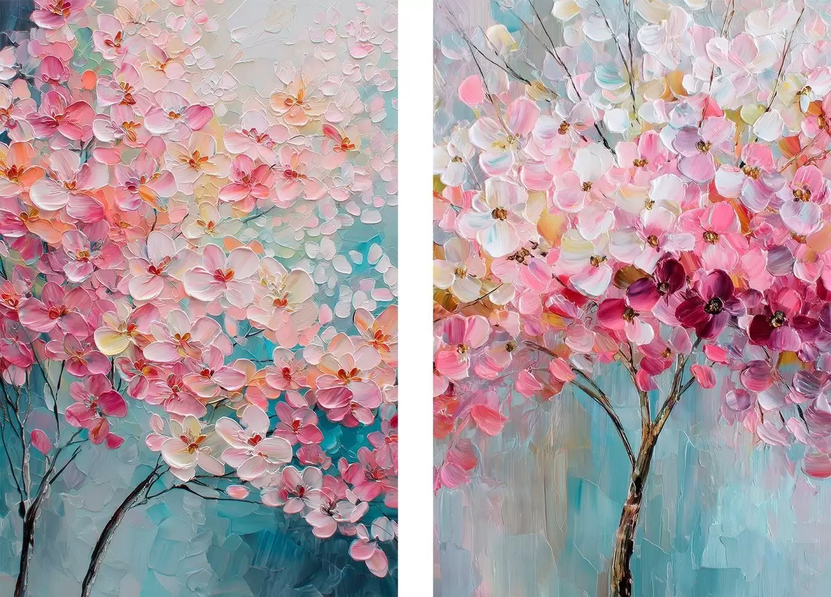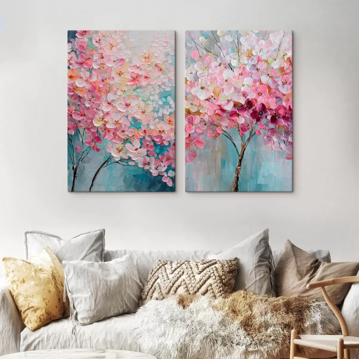 Cuadros Árbol en flor con flores rosas en estilo pintura al óleo Nr m30040