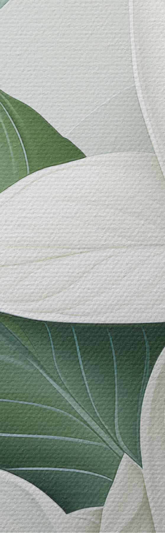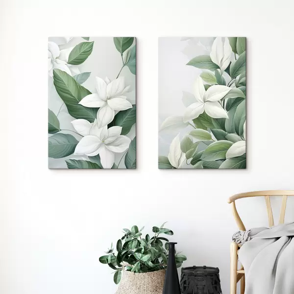 Cuadros Flores blancas con hojas verdes, fondo pastel Nr m30055