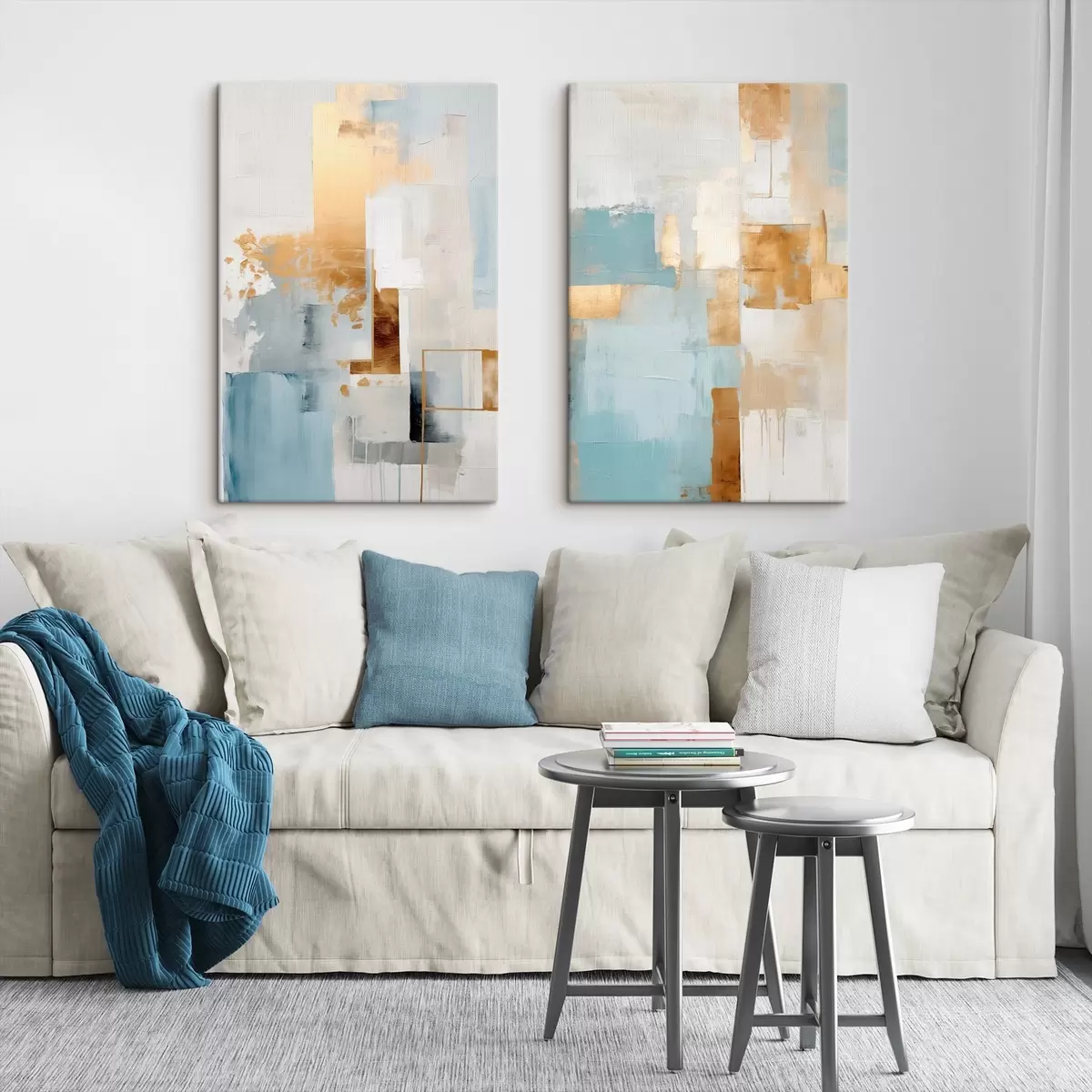 Cuadros Formas geométricas abstractas con colores amarillo, azul y blanco, composición texturizada y minimalista. Nr m30061