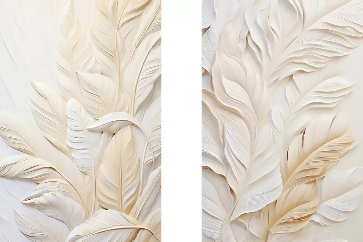murales de pared Plumas de color crema superpuestas entre sí, con un fondo suave y claro. m30062