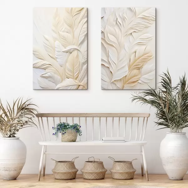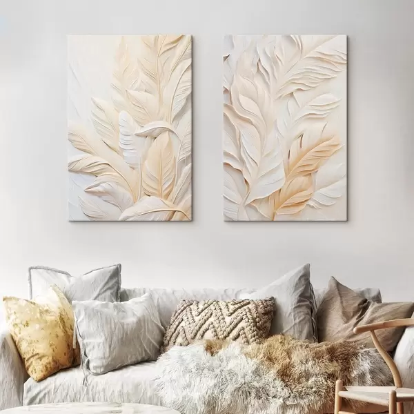 Cuadros Plumas de color crema superpuestas entre sí, con un fondo suave y claro. Nr m30062