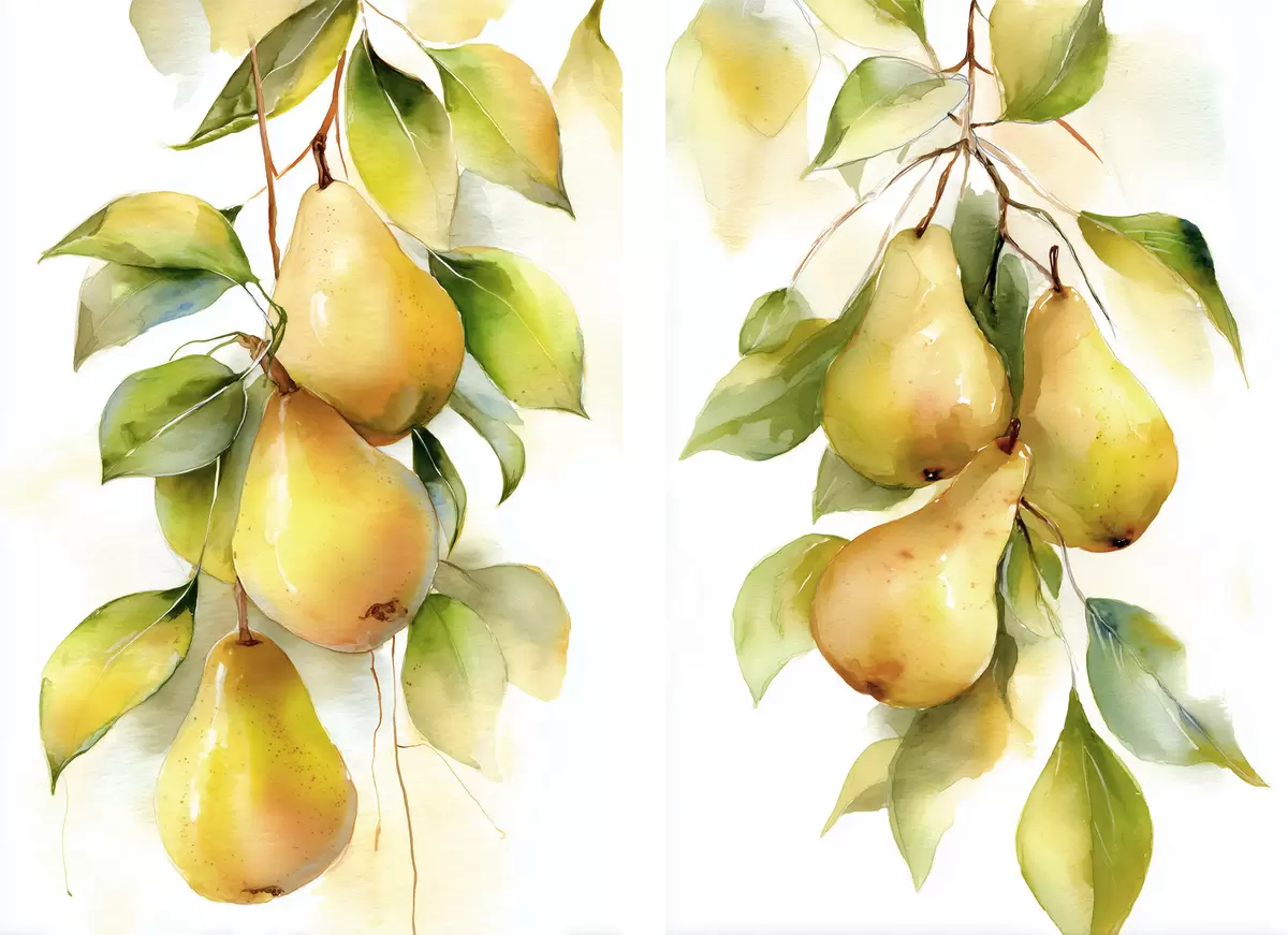 Cuadros Jugosas peras amarillas en estilo acuarela Nr m30088