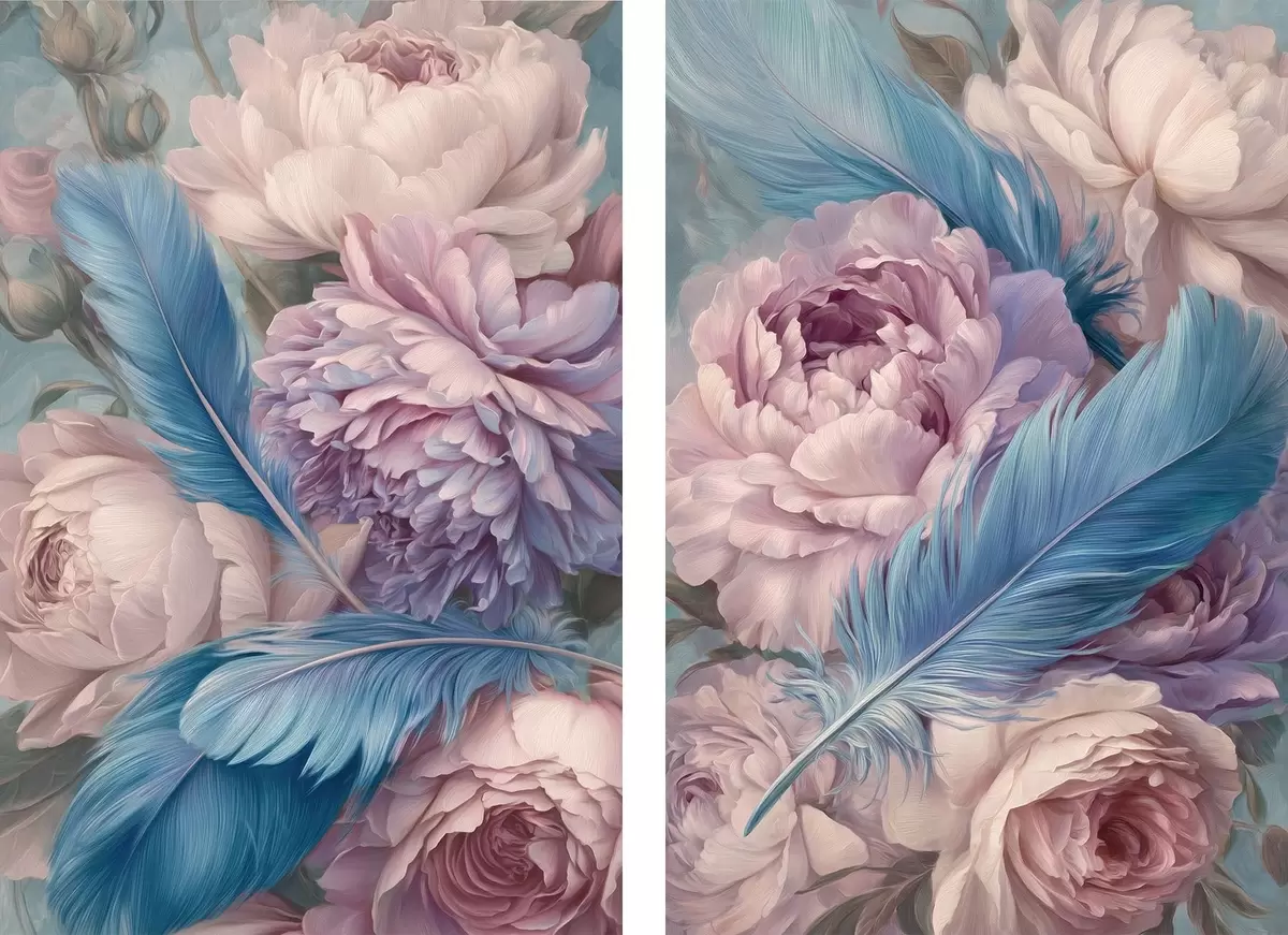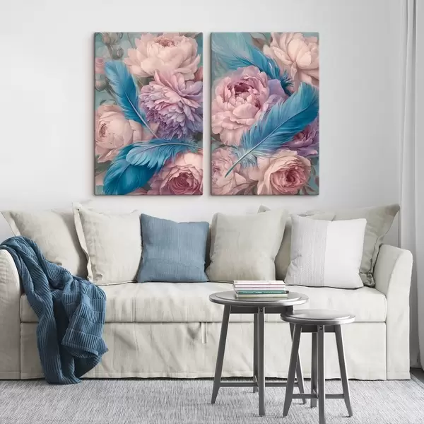 Cuadros plumas entre peonías Nr m30092