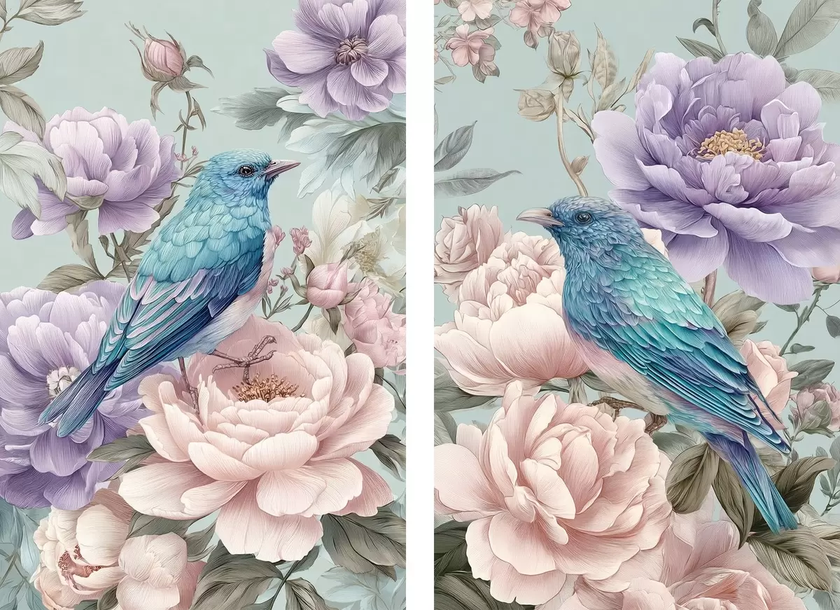 murales de pared pájaros cantando entre rosas m30094