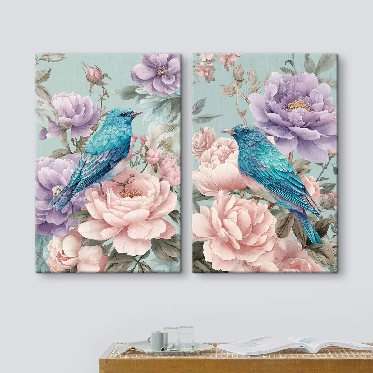 Cuadros pájaros cantando entre rosas Nr m30094