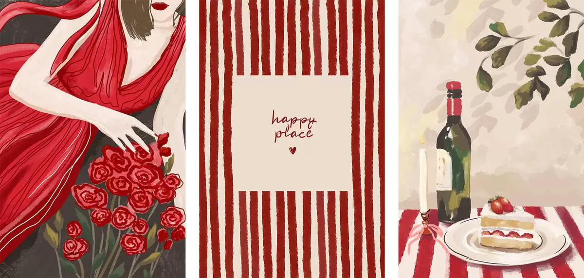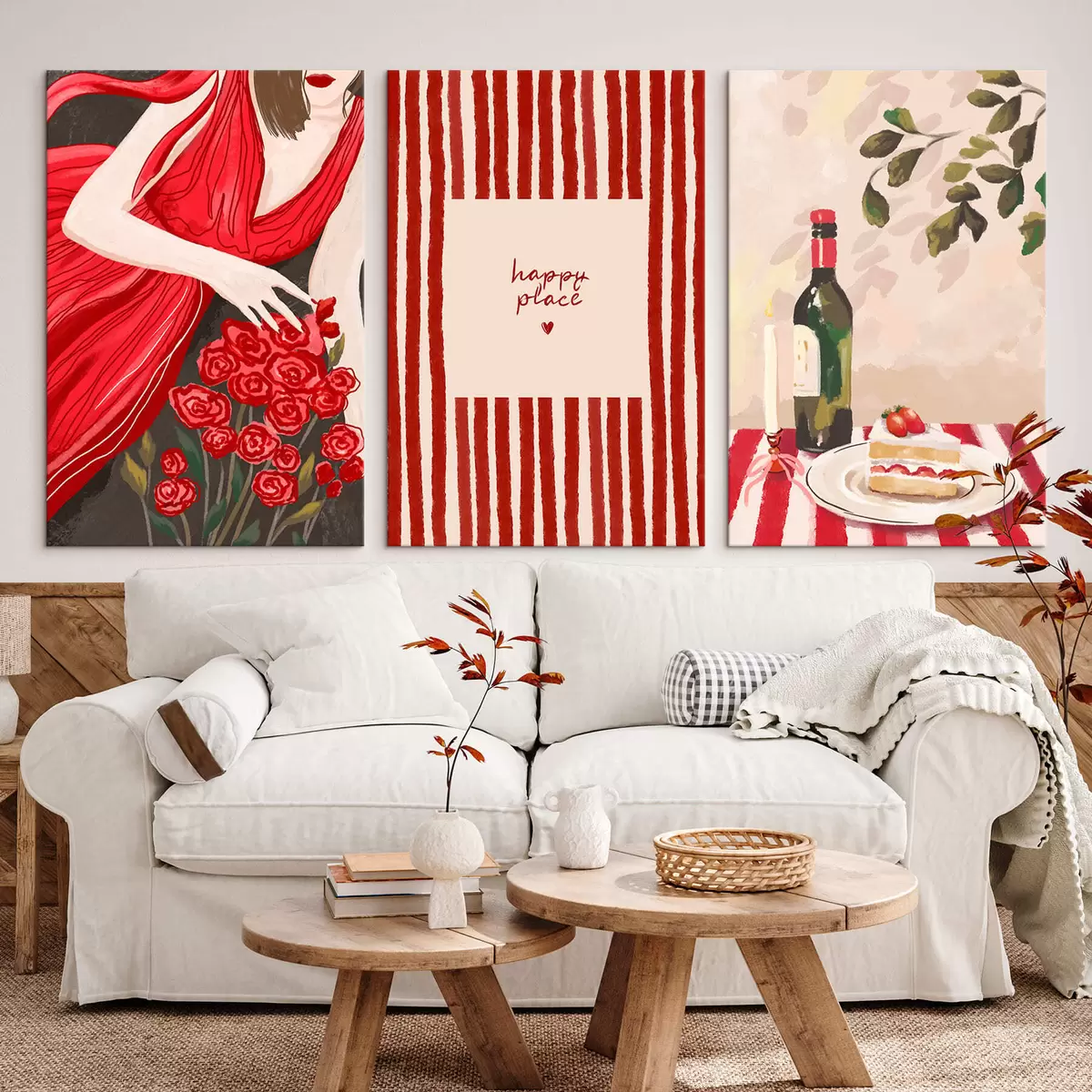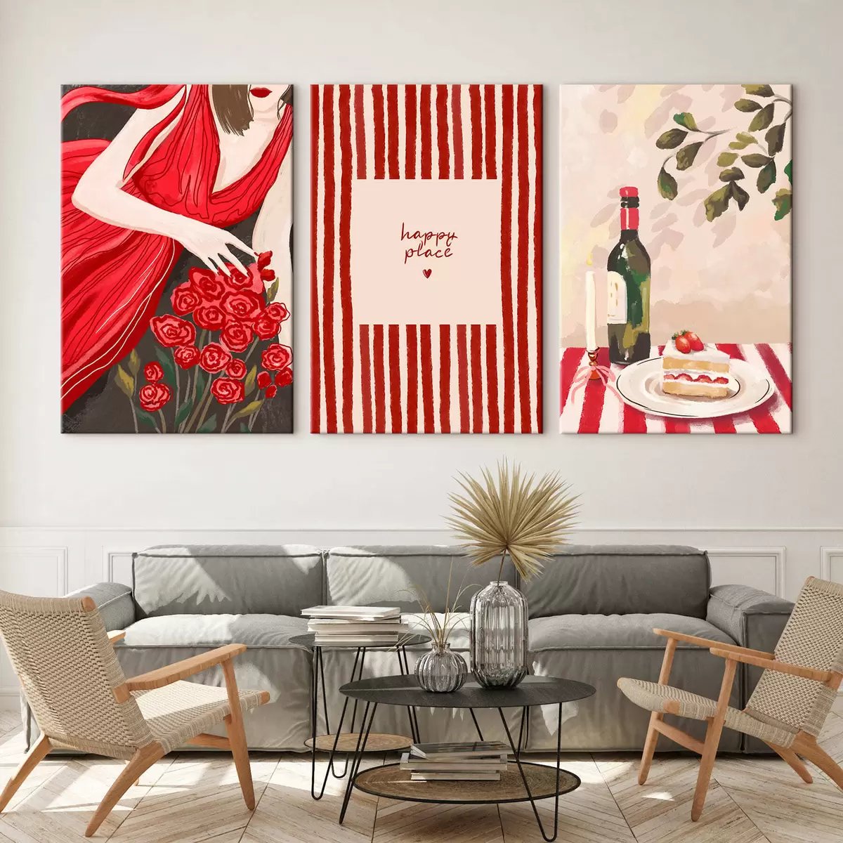Cuadros Mujer con rosas, póster a rayas y mesa Nr m30099
