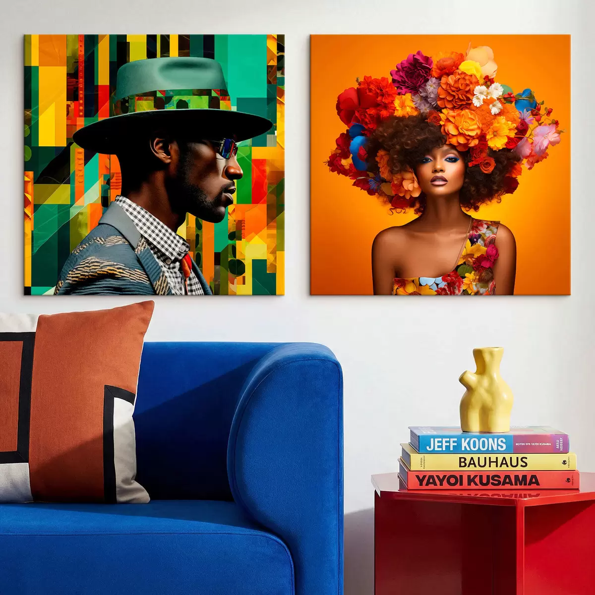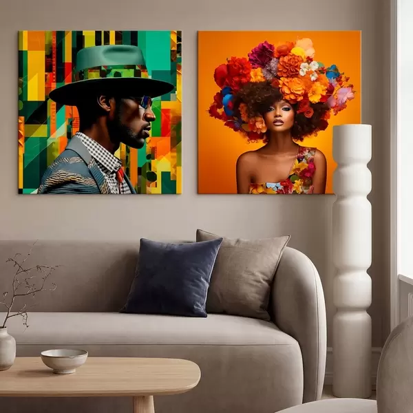 Cuadros Retrato de un hombre con sombrero y una mujer con una gran corona de flores Nr m30102