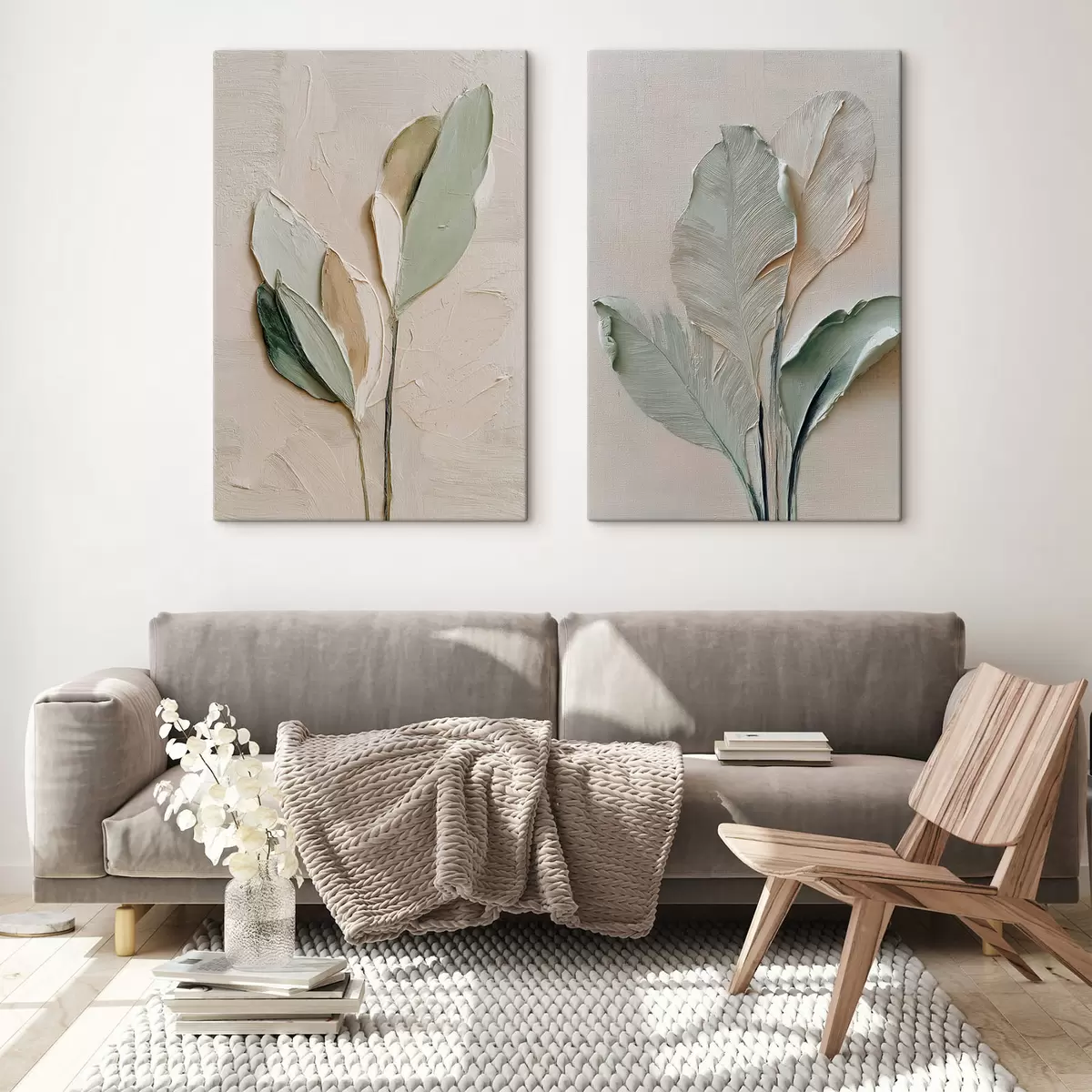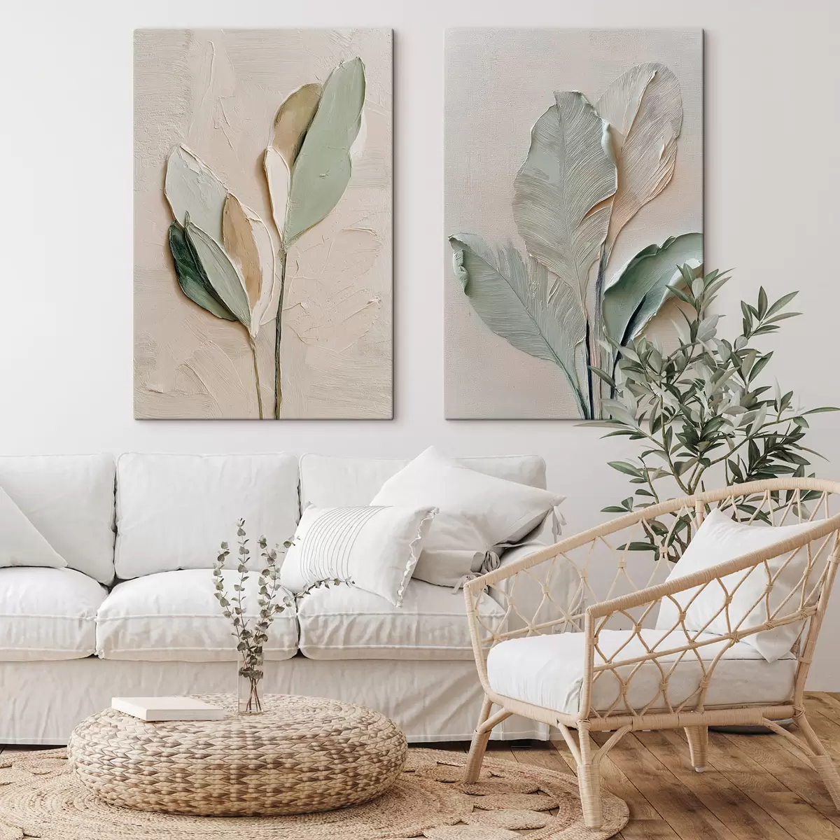 Hay tres tipos de material disponibles para pedidos: Lienzo Económico - material denso y duradero para impresión digital, idéntico al lienzo de pintor, superficie impermeable, reproducción realista de los detalles, material de grano medio. Lienzo Premium - la textura se asemeja a la de un lienzo de pintor (pequeños hilos entrelazados). Reproducción suave y detallada de la imagen sobre una superficie mate. Eco-Premium - tejido 100% algodón de alta calidad. Gracias a las fibras naturales de algodón, el material es duradero y resistente al desgaste. Excelente reproducción del color y el detalle.