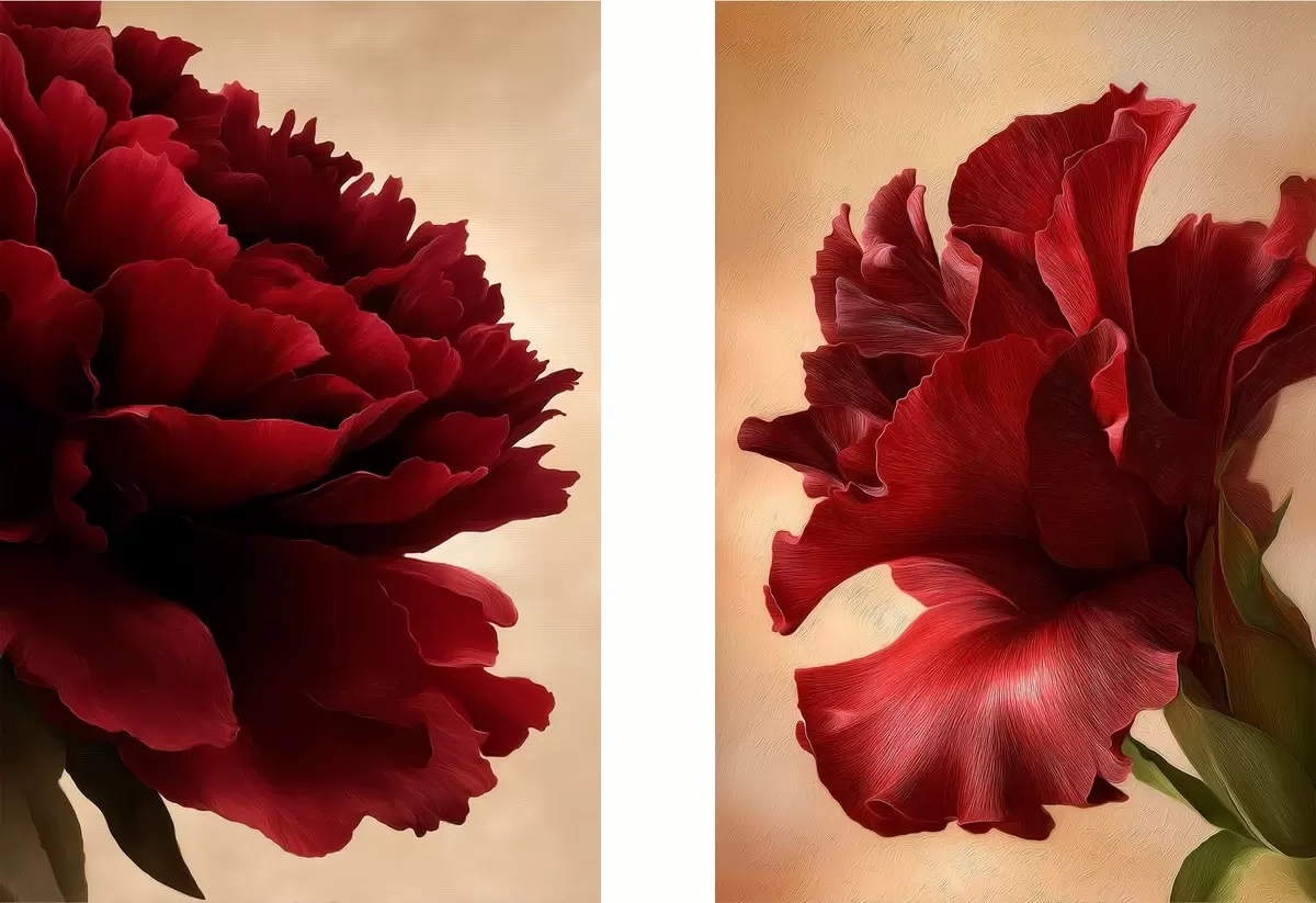 Hay tres tipos de material disponibles para pedidos: Lienzo Económico - material denso y duradero para impresión digital, idéntico al lienzo de pintor, superficie impermeable, reproducción realista de los detalles, material de grano medio. Lienzo Premium - la textura se asemeja a la de un lienzo de pintor (pequeños hilos entrelazados). Reproducción suave y detallada de la imagen sobre una superficie mate. Eco-Premium - tejido 100% algodón de alta calidad. Gracias a las fibras naturales de algodón, el material es duradero y resistente al desgaste. Excelente reproducción del color y el detalle.