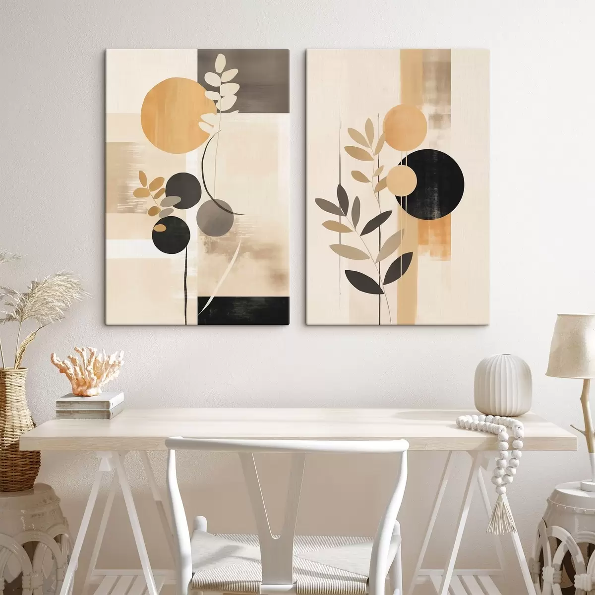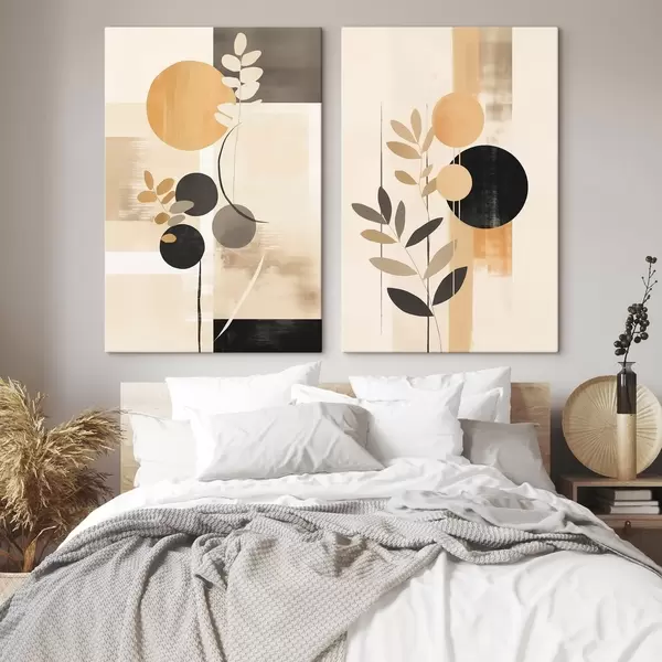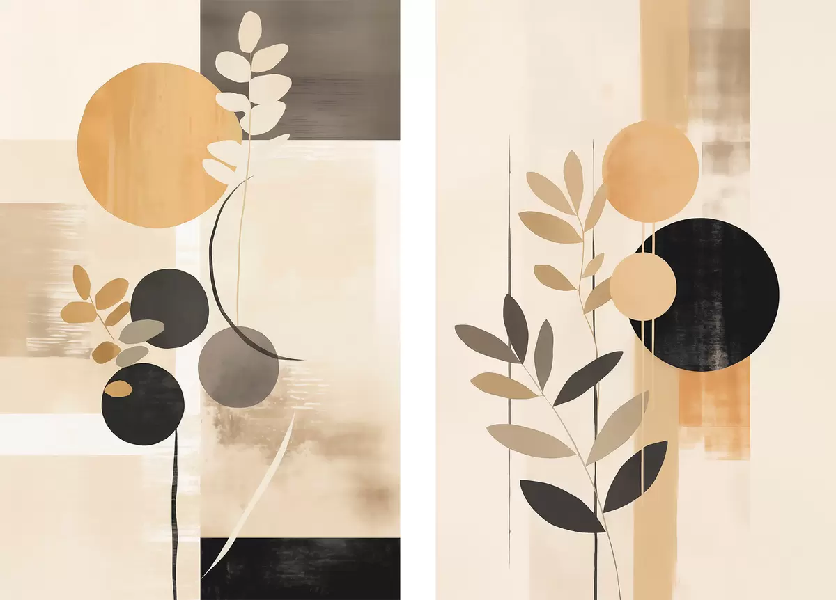 Cuadros Abstracciones con hojas y círculos Nr m30133