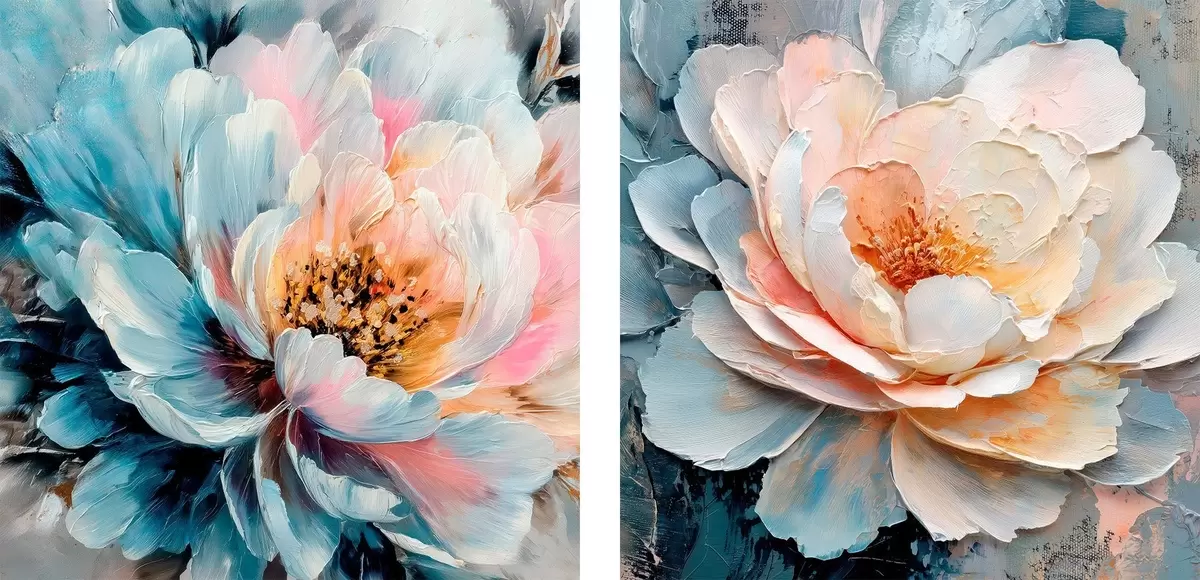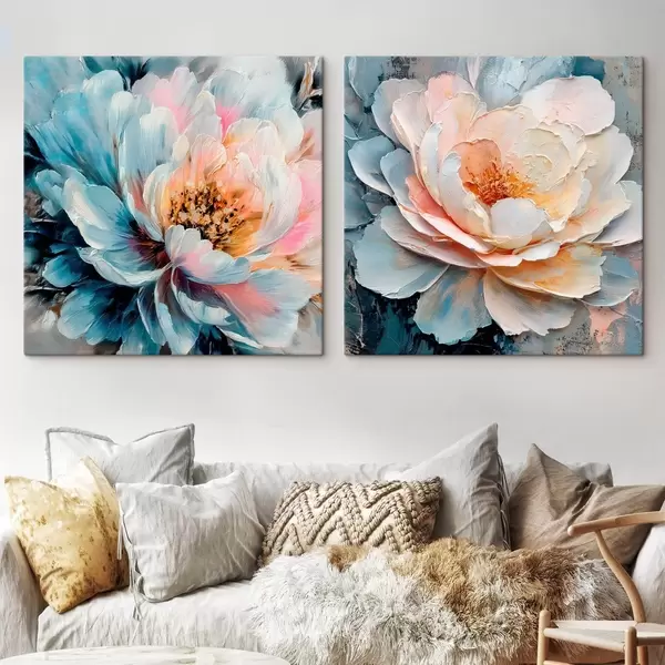 Cuadros Composición floral abstracta en tonos rosas y azules con pétalos texturados Nr m30148