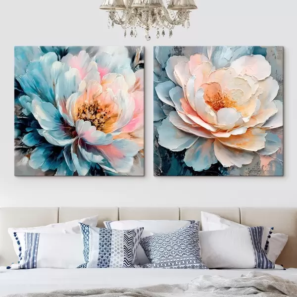 murales de pared Composición floral abstracta en tonos rosas y azules con pétalos texturados m30148