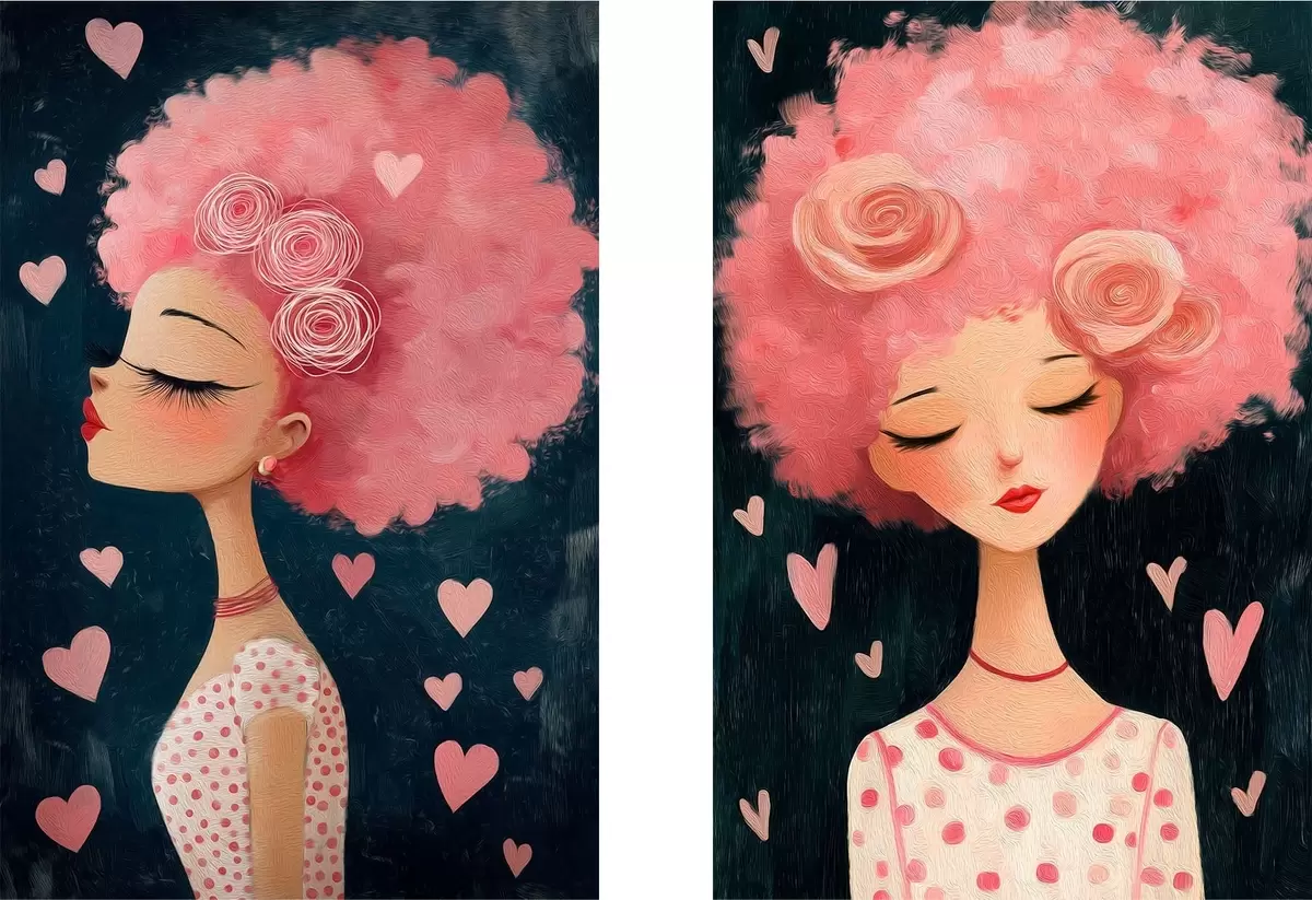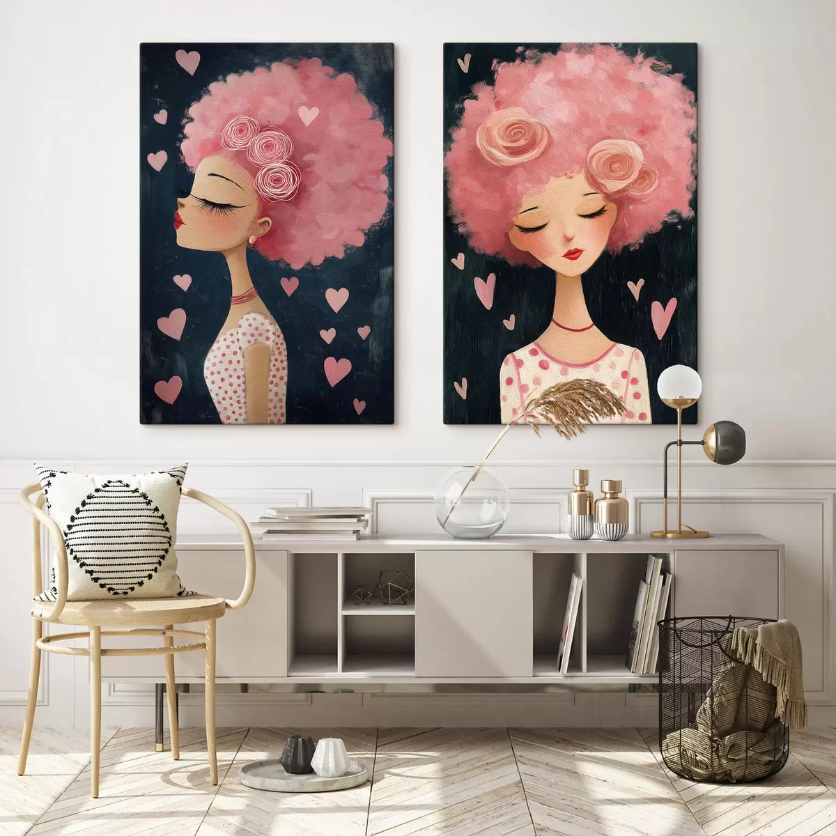 Cuadros Chica con pelo rosa y corazones Nr m30156