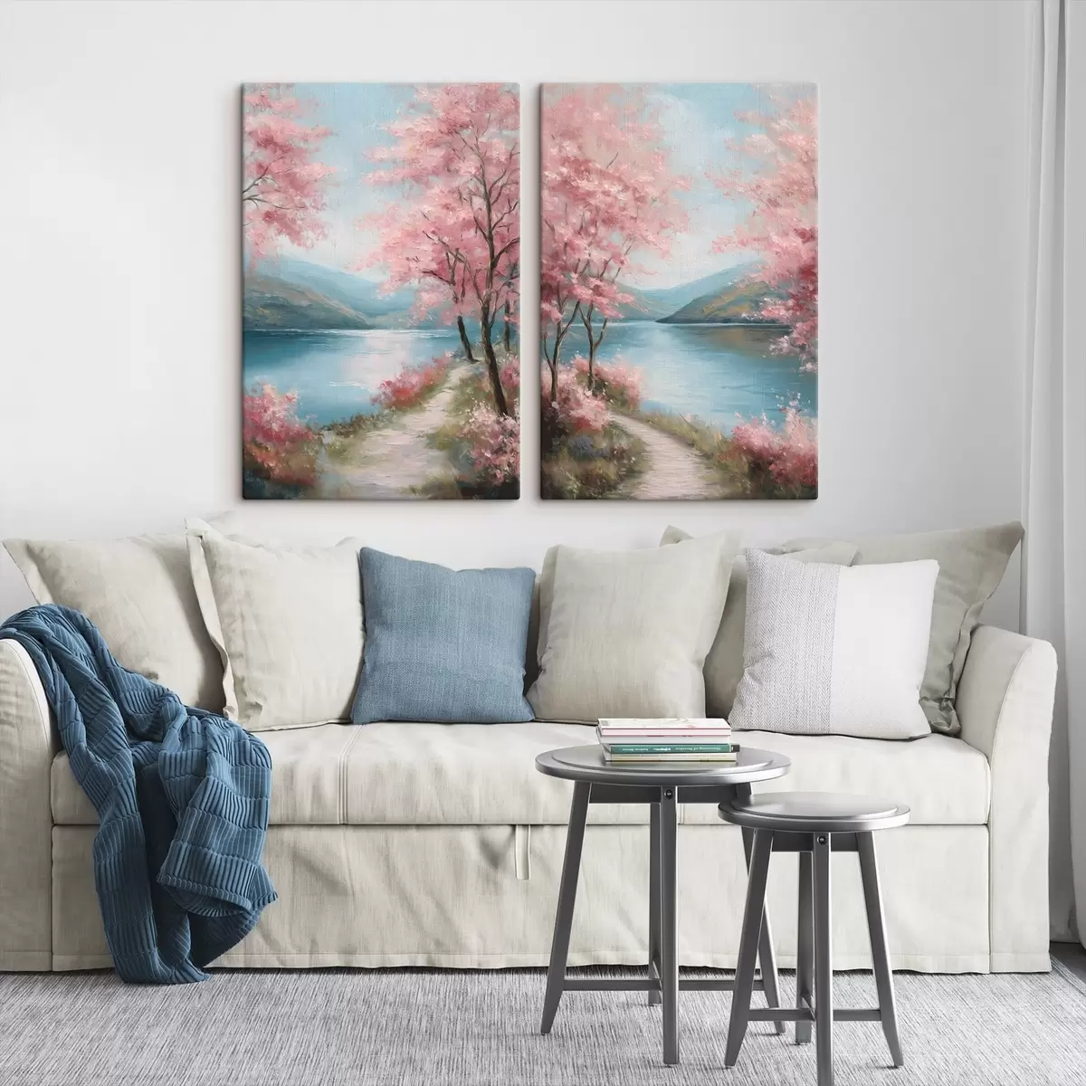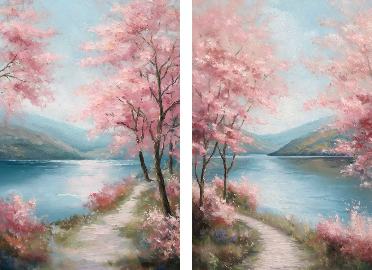 Cuadros Paisaje con árboles rosados en estilo óleo. Nr m30176