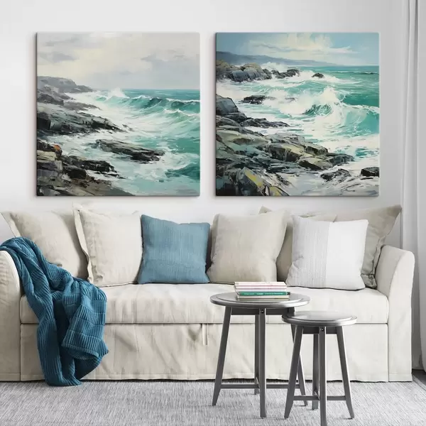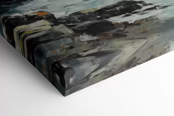 Cuadros Un paisaje de costa rocosa con olas bajo un cielo nublado, estilo pictórico Nr m30198