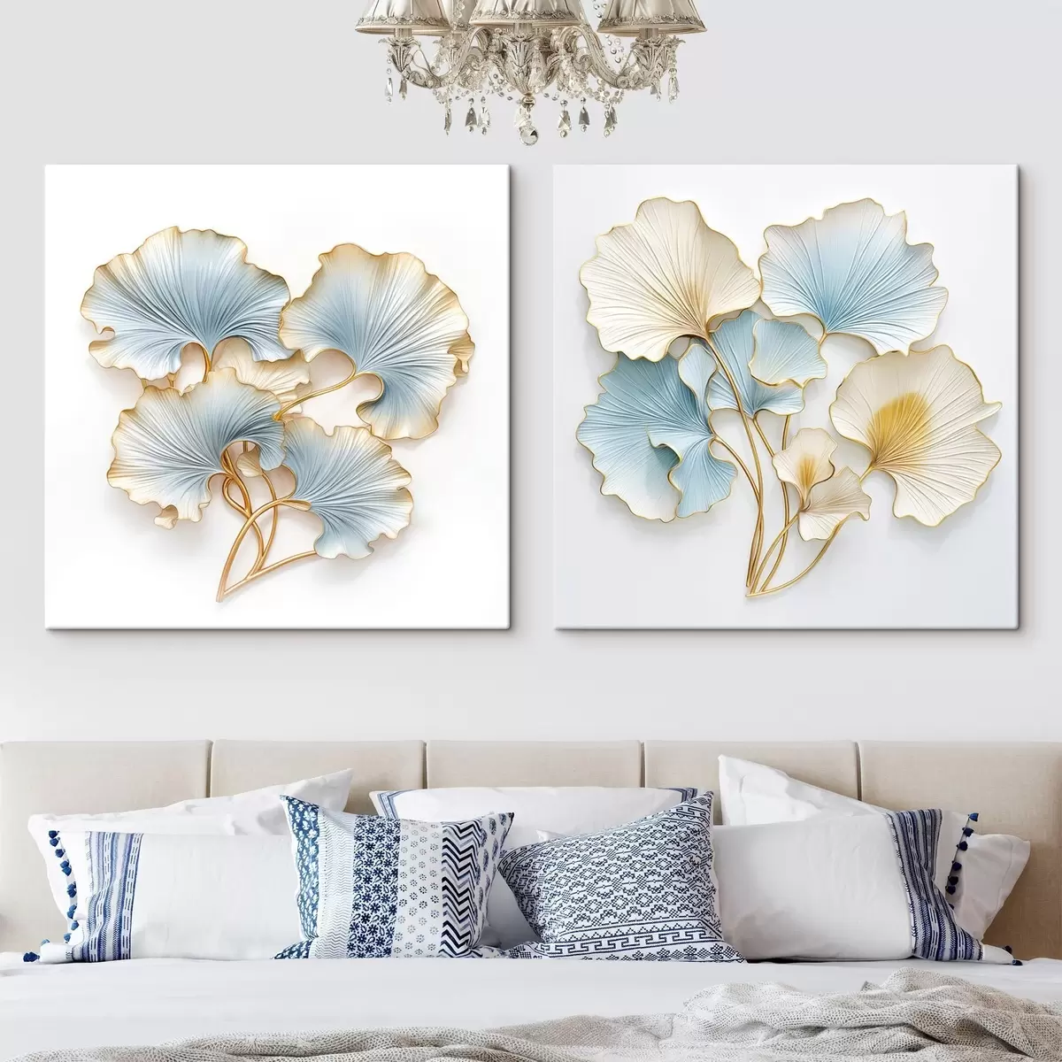 Cuadros Hojas de ginkgo estilizadas con toques de azul y amarillo Nr m30203