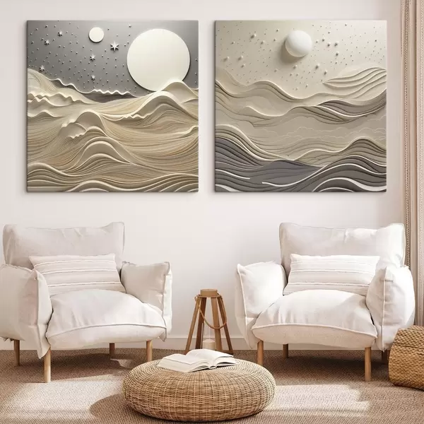 Hay tres tipos de material disponibles para pedidos: Lienzo Económico - material denso y duradero para impresión digital, idéntico al lienzo de pintor, superficie impermeable, reproducción realista de los detalles, material de grano medio. Lienzo Premium - la textura se asemeja a la de un lienzo de pintor (pequeños hilos entrelazados). Reproducción suave y detallada de la imagen sobre una superficie mate. Eco-Premium - tejido 100% algodón de alta calidad. Gracias a las fibras naturales de algodón, el material es duradero y resistente al desgaste. Excelente reproducción del color y el detalle.