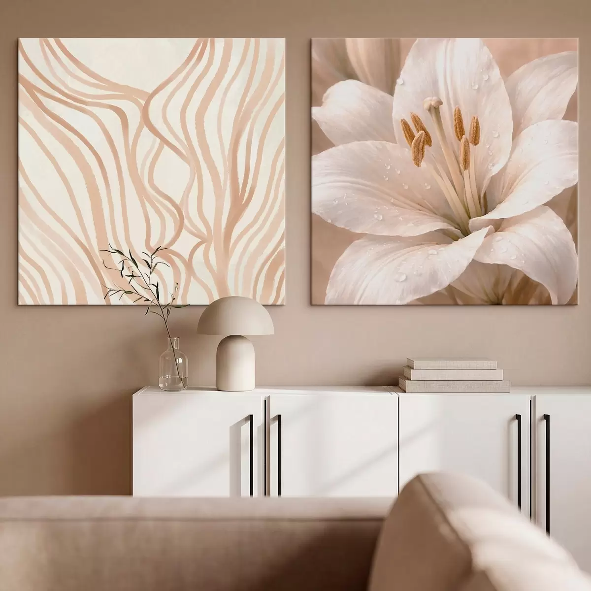 murales de pared Díptico con flores y formas abstractas m30236