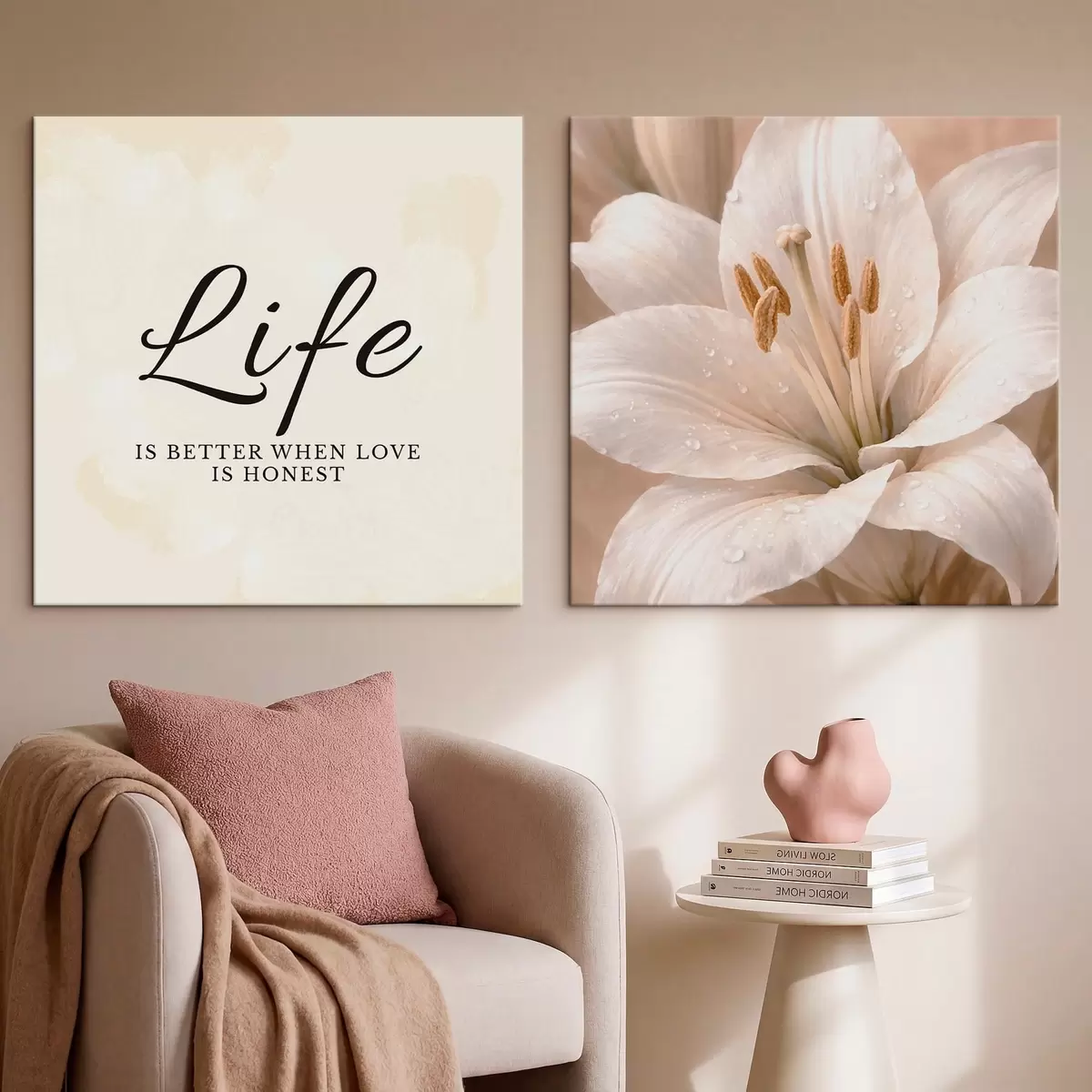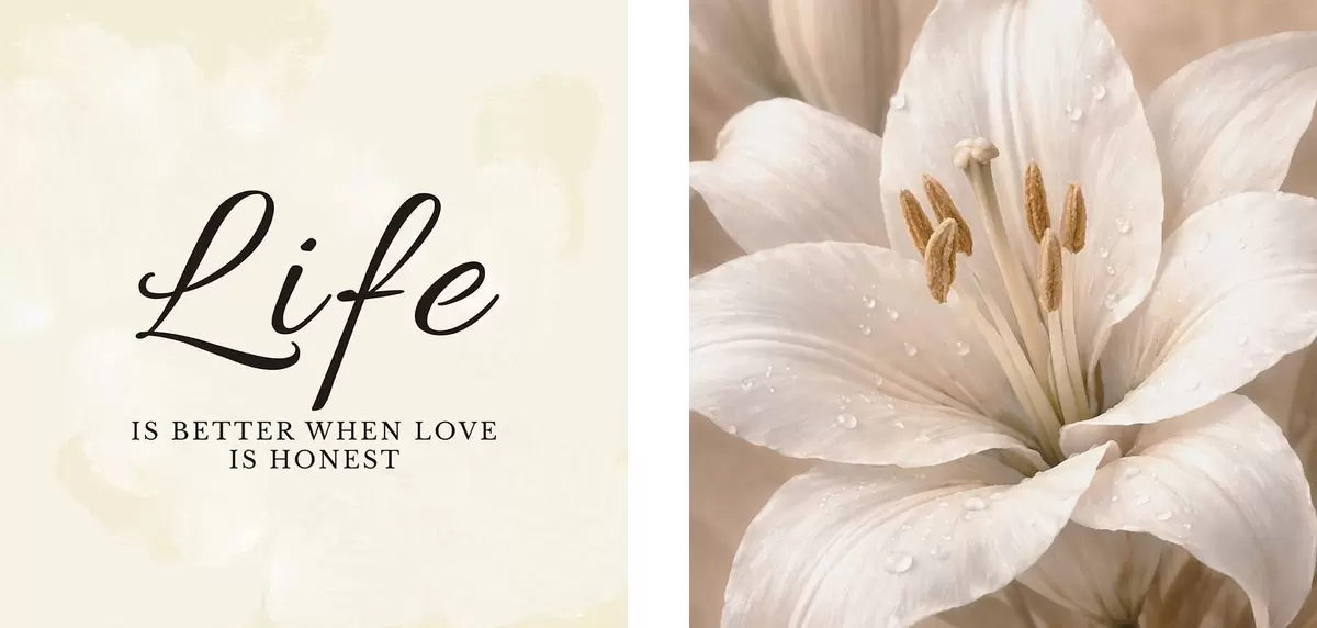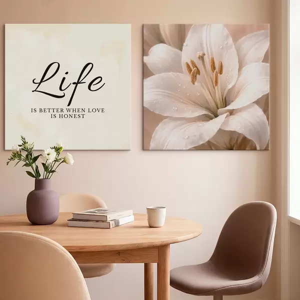 Cuadros Díptico con el texto «Life» y un primer plano de una flor blanca Nr m30237