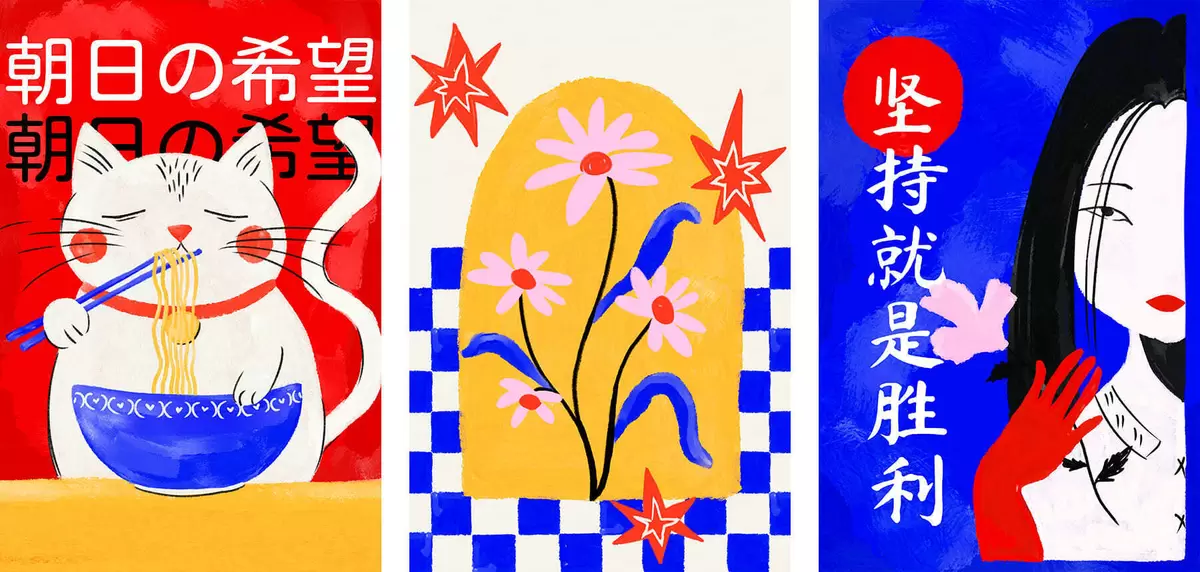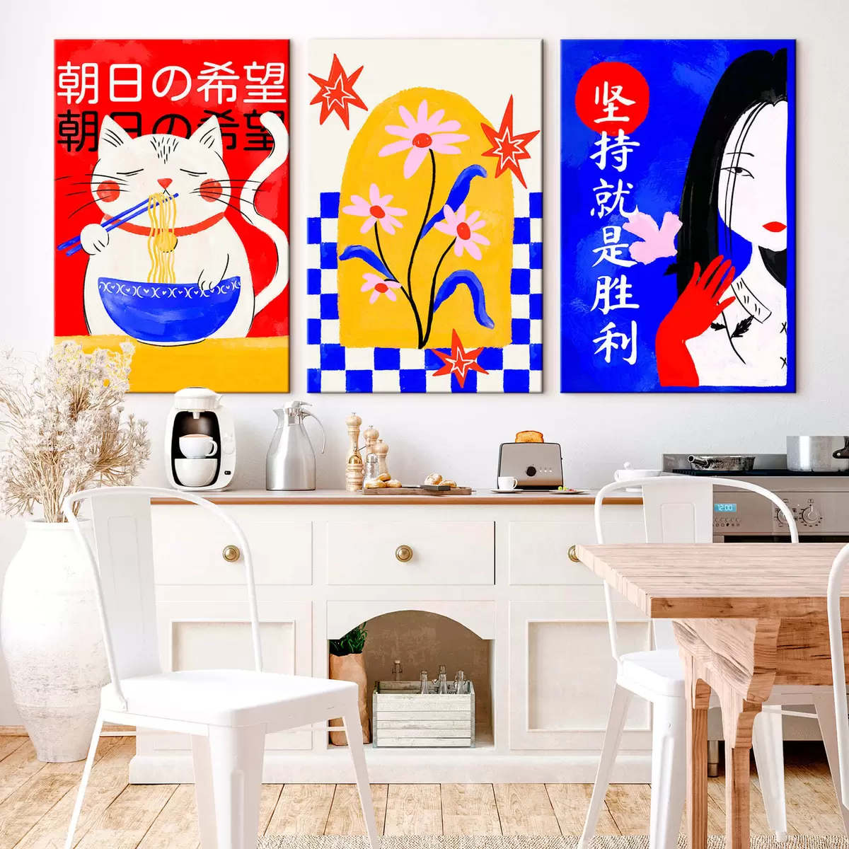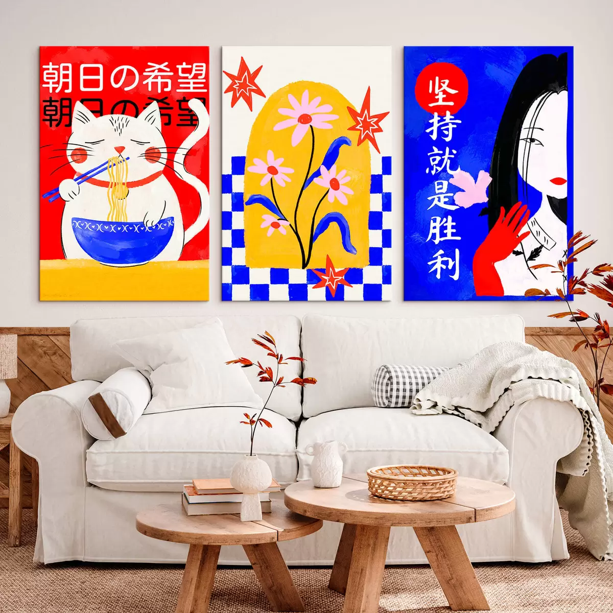 Cuadros Tríptico con un gato, un pez y el retrato de una mujer Nr m30240