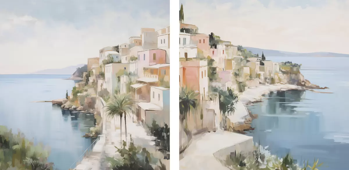 Cuadros Paisaje de una ciudad junto al mar, imitación de un cuadro Nr m30295