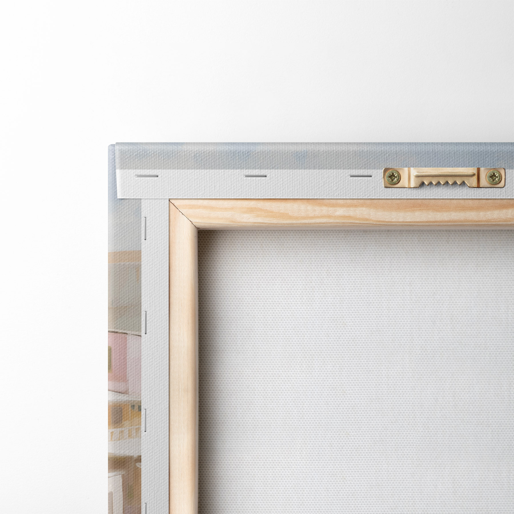 Vendemos cuadros en bastidor: se trata de un marco de madera sobre el que se extiende el lienzo. Este cuadro no necesita marco; puedes colgarlo directamente en la pared.