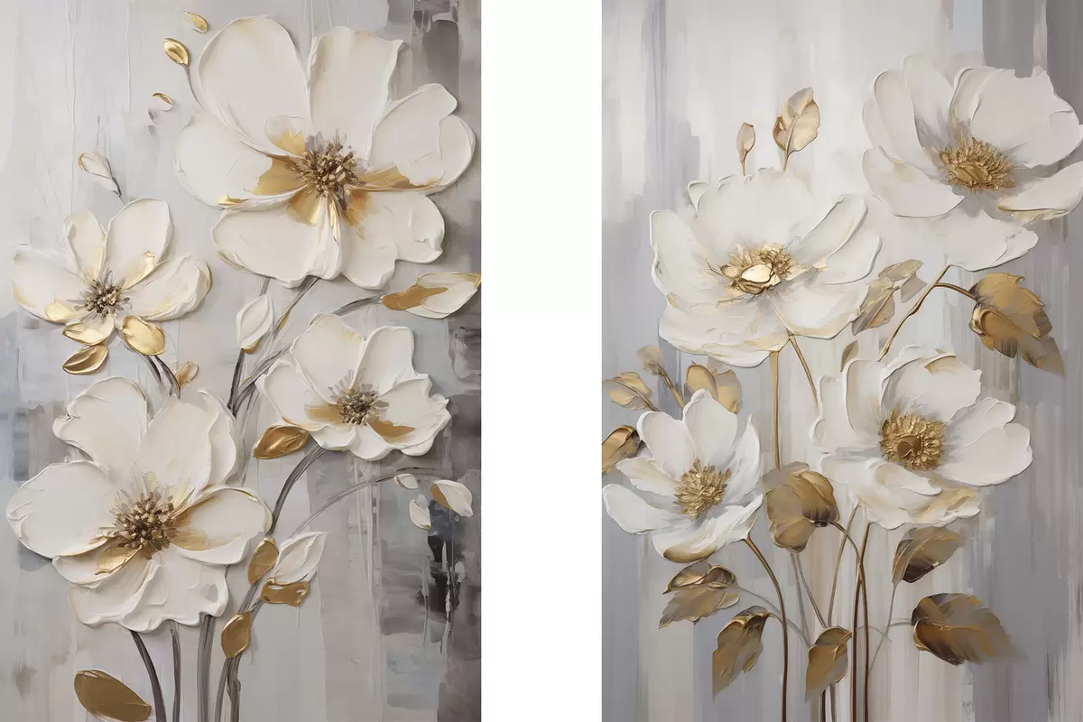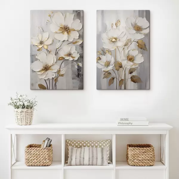 murales de pared Flores blancas con toques amarillos sobre un fondo texturizado m30311