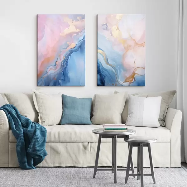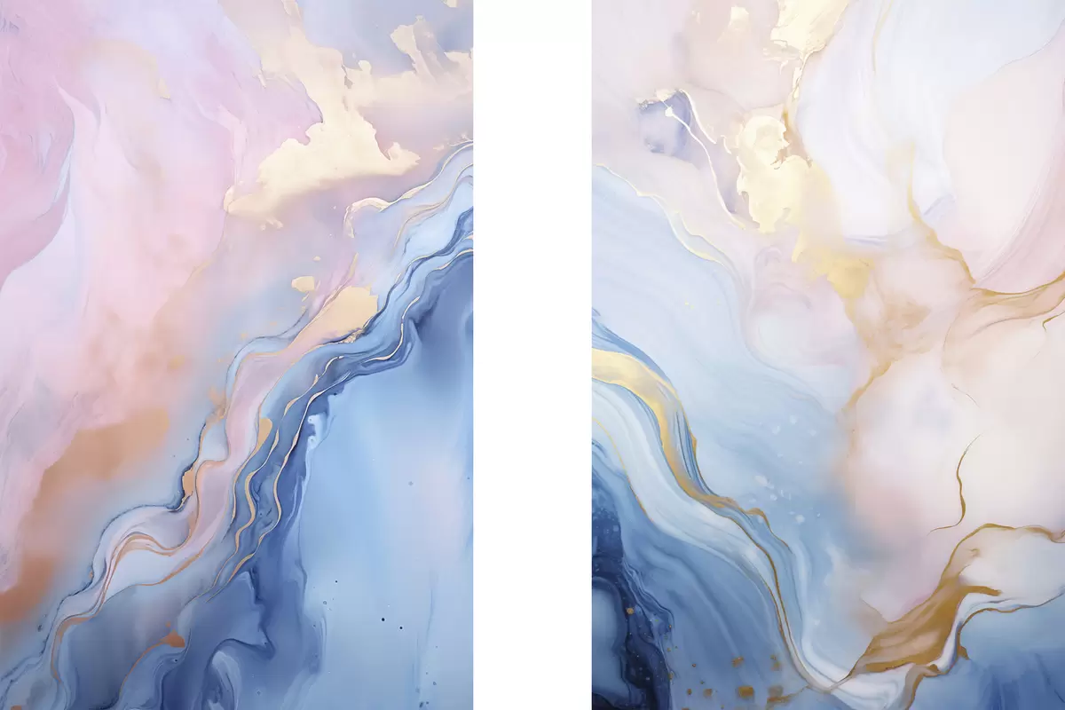 Cuadros Arte fluido abstracto con texturas y motivos en espiral en tonos rosas y azules Nr m30315