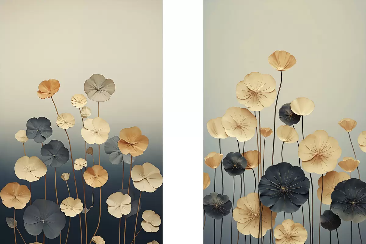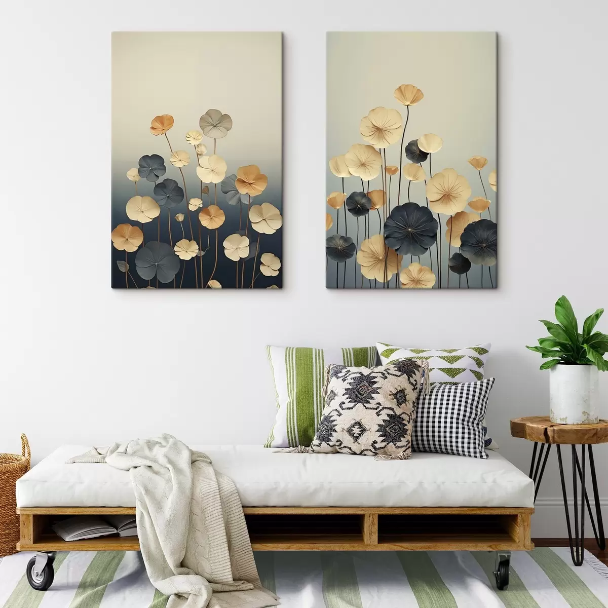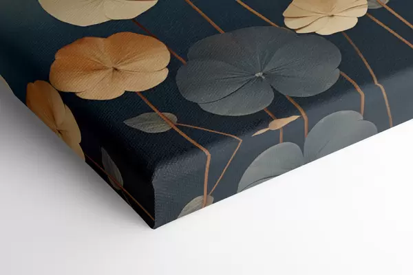 Cuadros Hojas de nenúfar sobre un fondo en tonos apagados de beige y azul oscuro Nr m30317