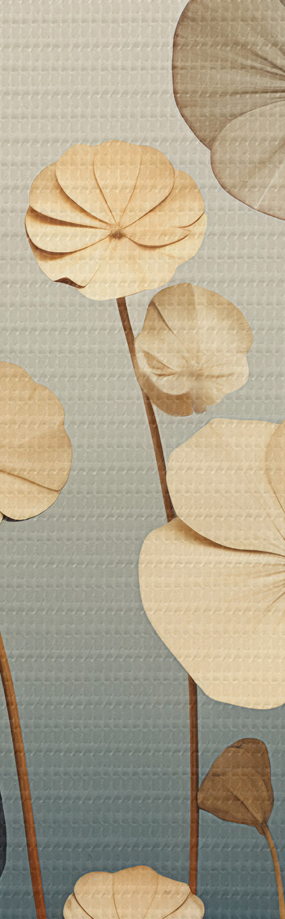 murales de pared Hojas de nenúfar sobre un fondo en tonos apagados de beige y azul oscuro m30317