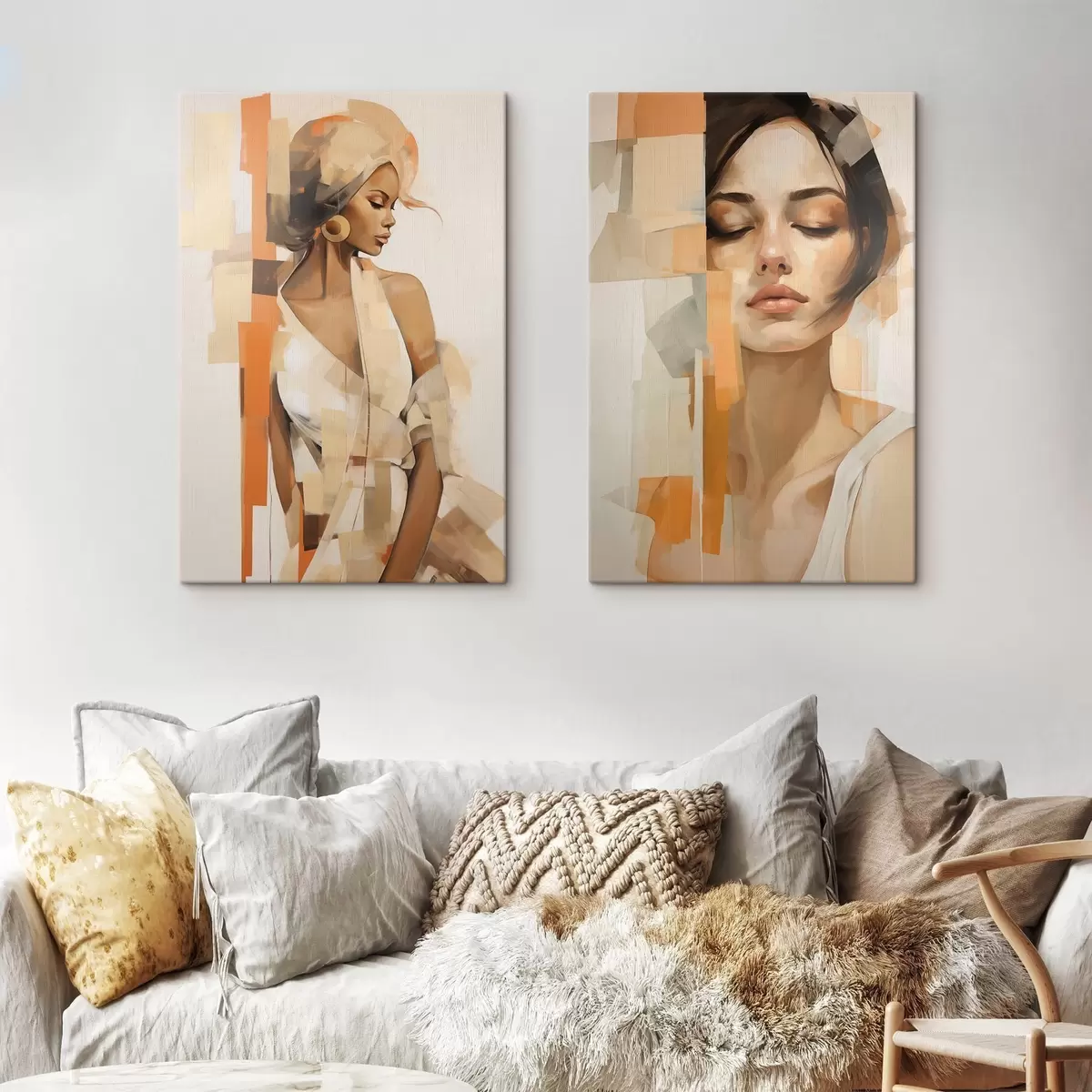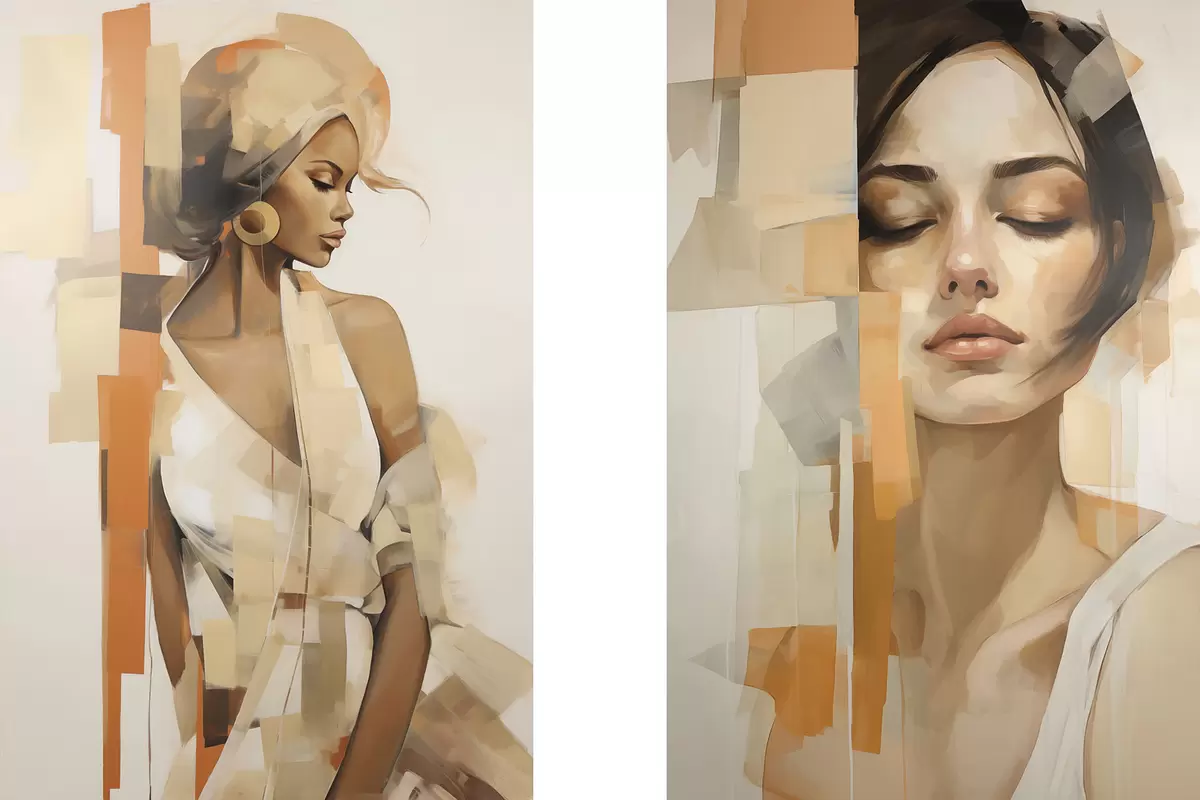 Cuadros Retrato abstracto de una mujer con formas naranjas y beige Nr m30318