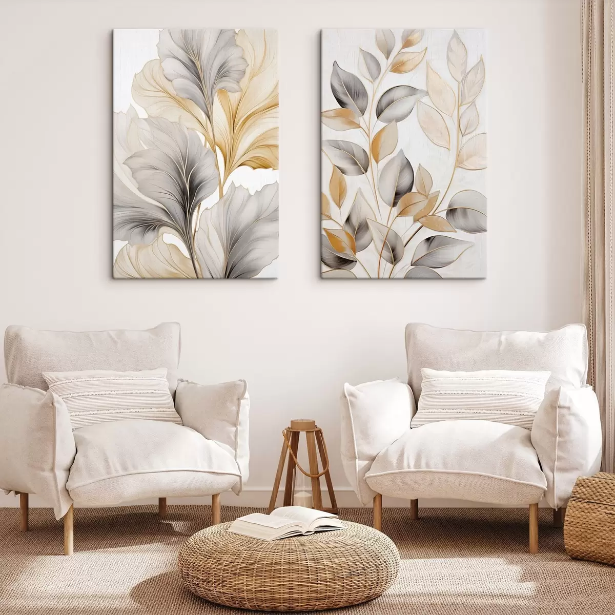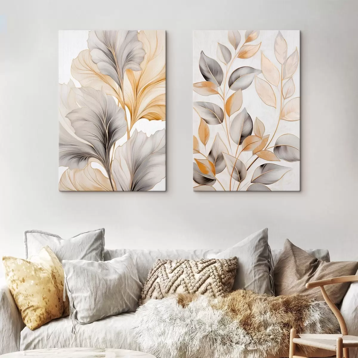 Cuadros Hojas grandes y translúcidas en tonos grises y amarillos Nr m30323