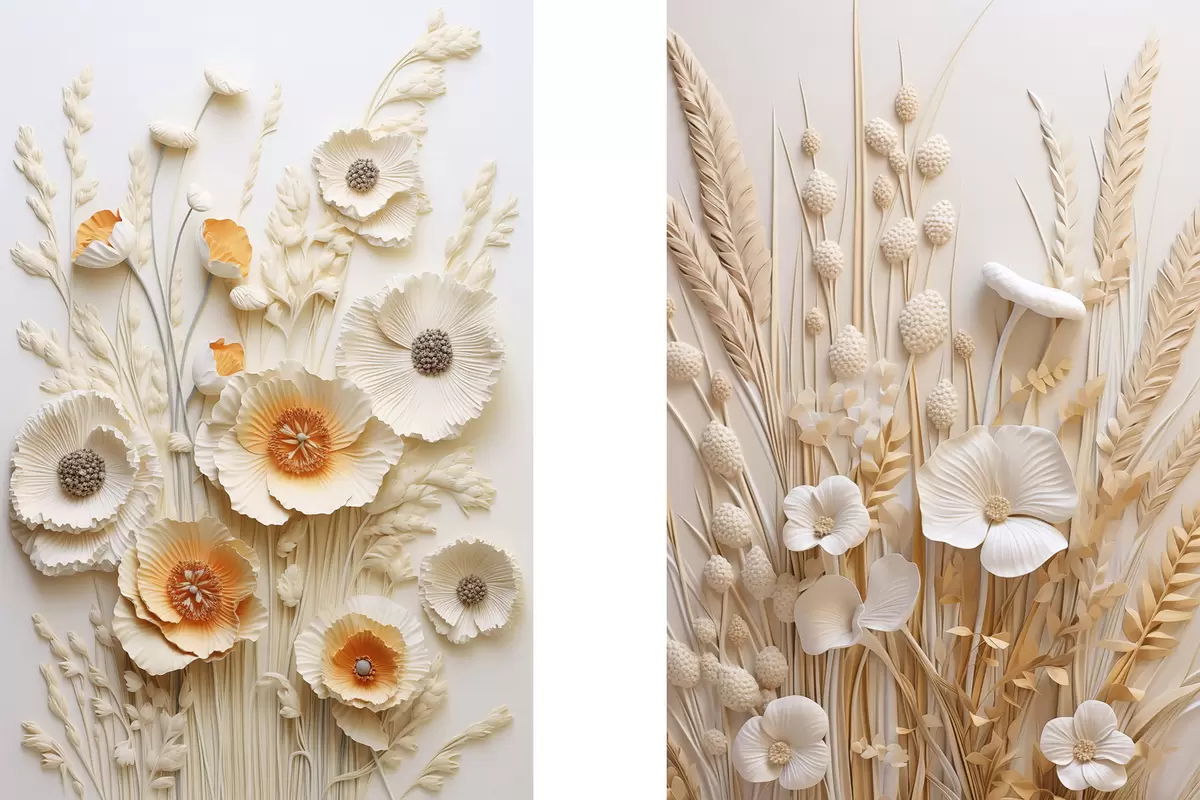 murales de pared Un ramo de amapolas de color crema y naranja con tallos de trigo secos m30324