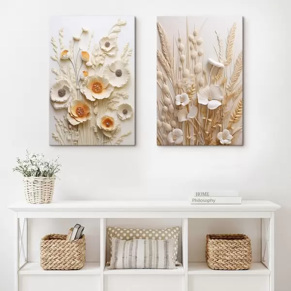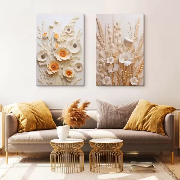 Cuadros Un ramo de amapolas de color crema y naranja con tallos de trigo secos Nr m30324