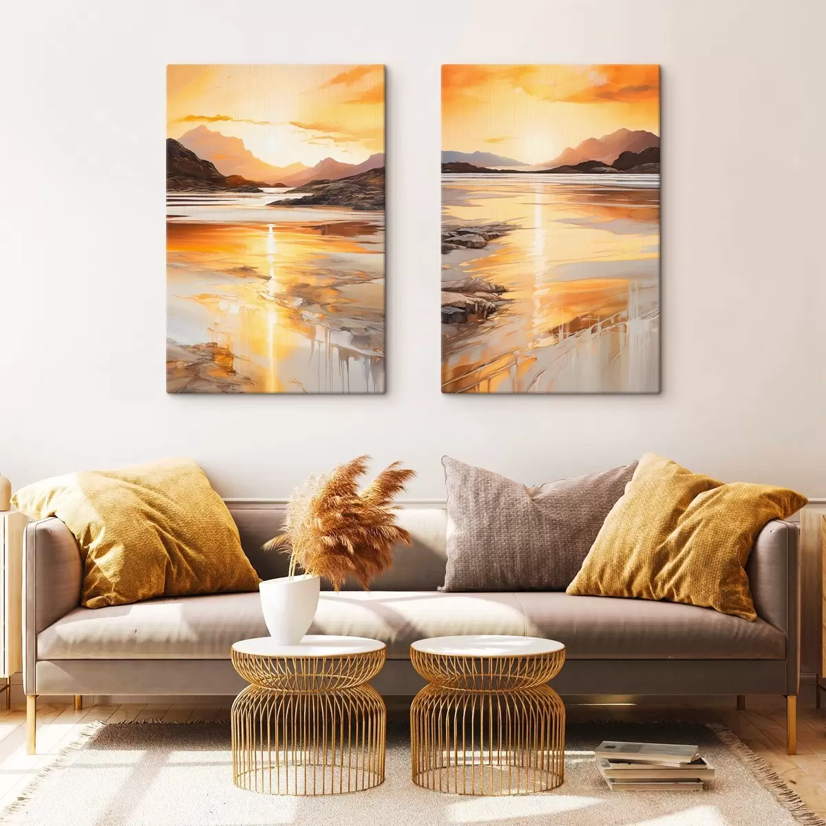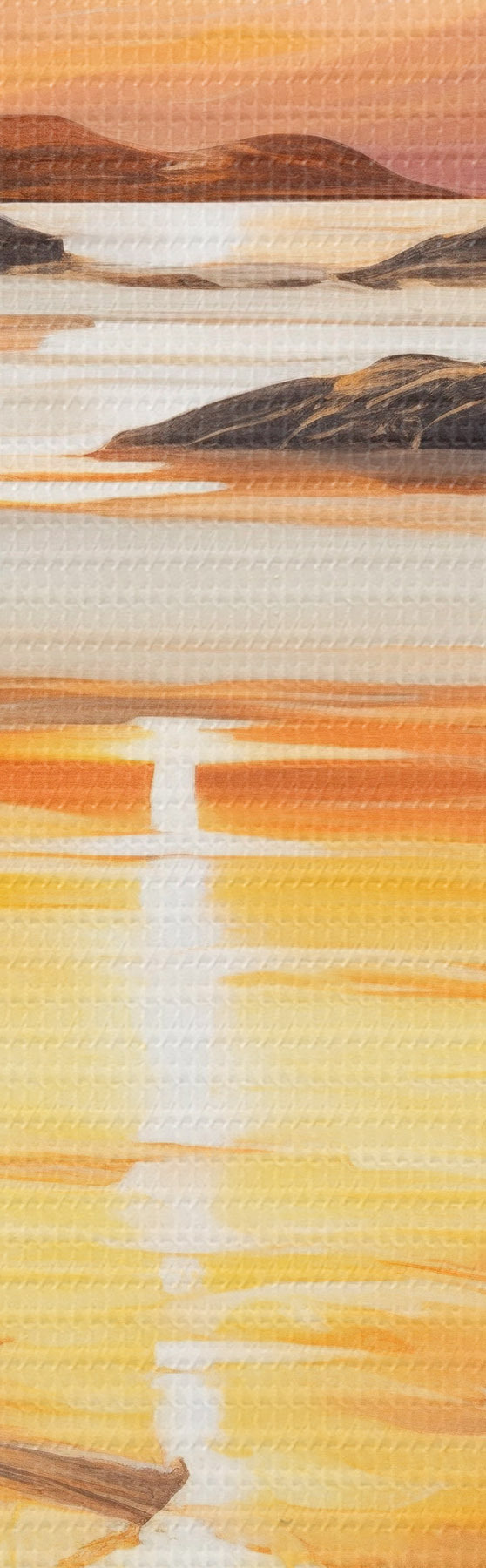 Cuadros Un paisaje con un río y montañas bajo un cálido cielo anaranjado, al atardecer Nr m30328