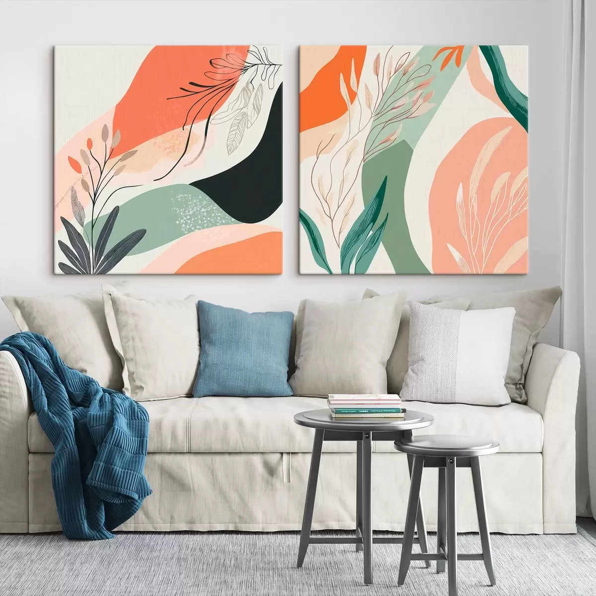 murales de pared Díptico abstracto con motivos vegetales y manchas de color en estilo moderno m30347
