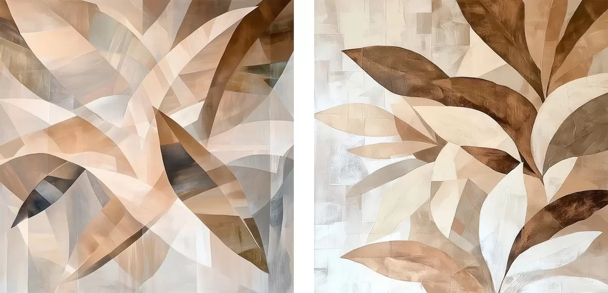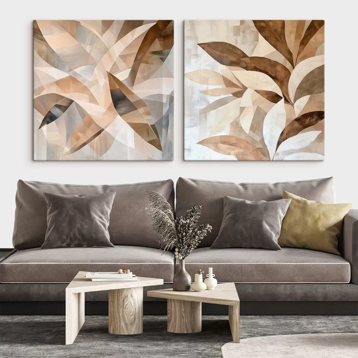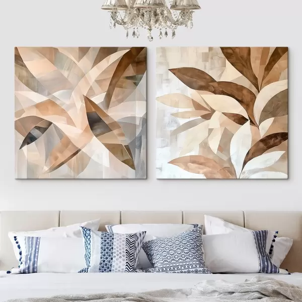 Cuadros Follaje estilizado en cálidos tonos arena, con un estilo contemporáneo de ilustración de interiores Nr m30350
