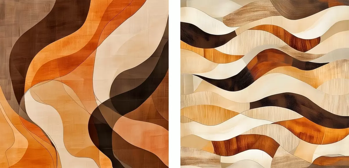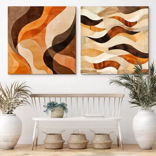 Cuadros Composición abstracta con líneas onduladas en una gama cálida de marrones y beiges Nr m30352