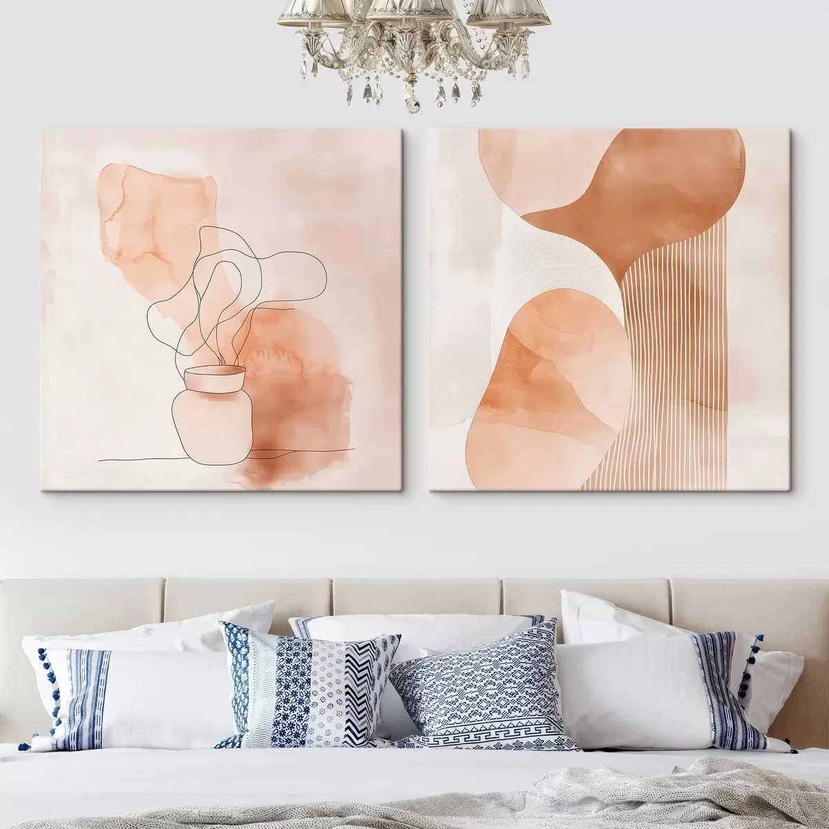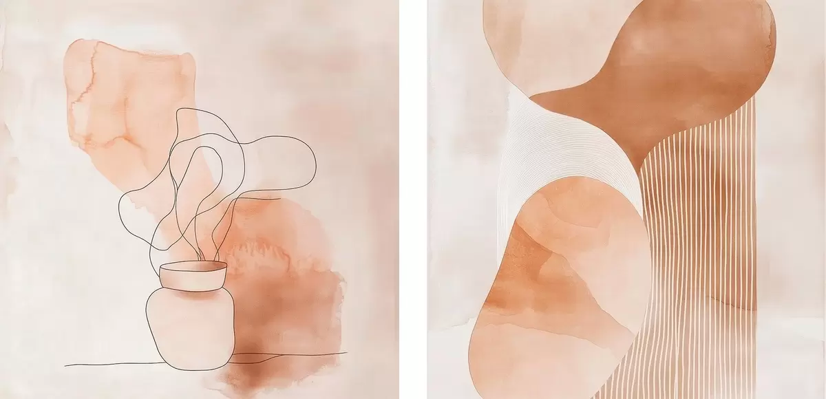 Cuadros Formas abstractas en una paleta de tonos beige y melocotón con toques lineales de estilo minimalista Nr m30361