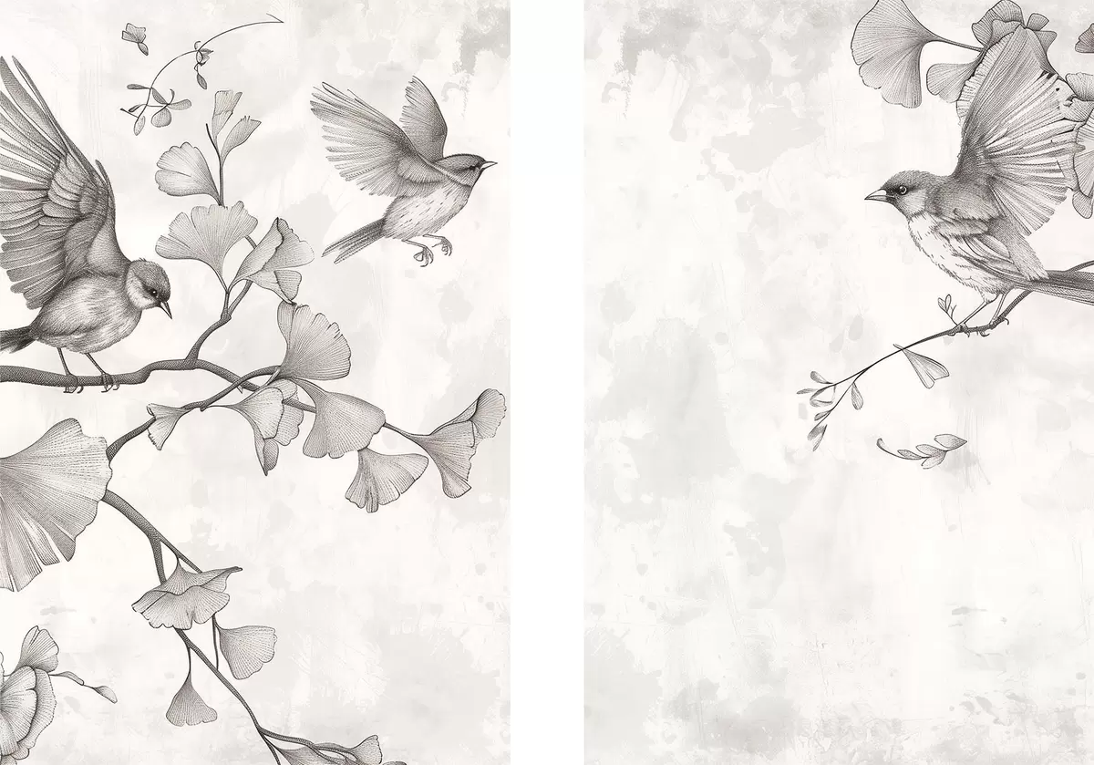murales de pared Pájaros en las ramas de un ginkgo m30380